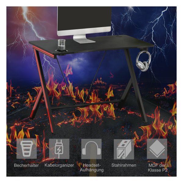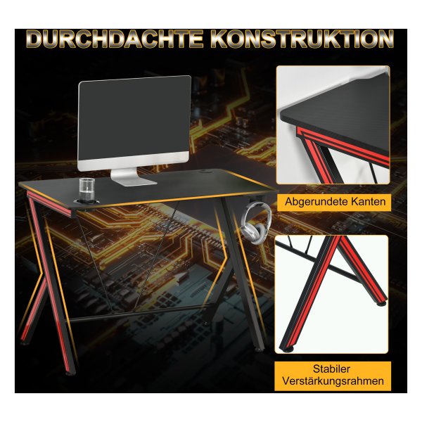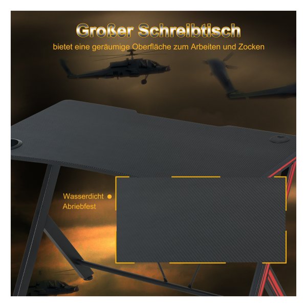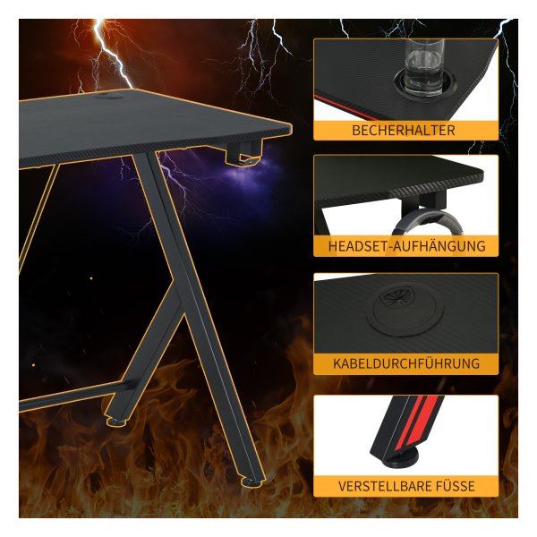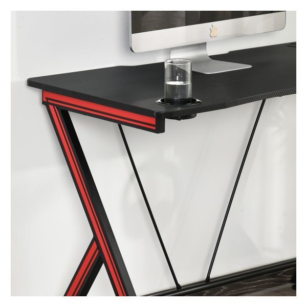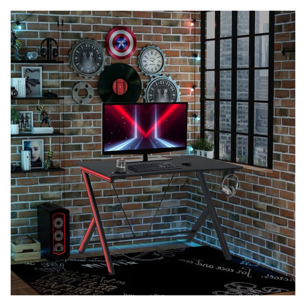 - Met een ergonomisch ontwerp en een groot oppervlak biedt dit gamingbureau voldoende ruimte voor al je elektronische apparaten en gamingaccessoires. Zo blijf je gefocust op het spel zonder afleidingen.