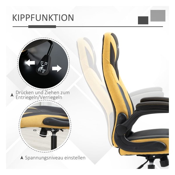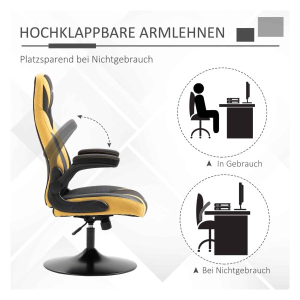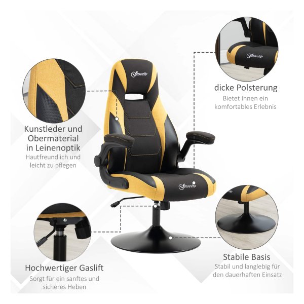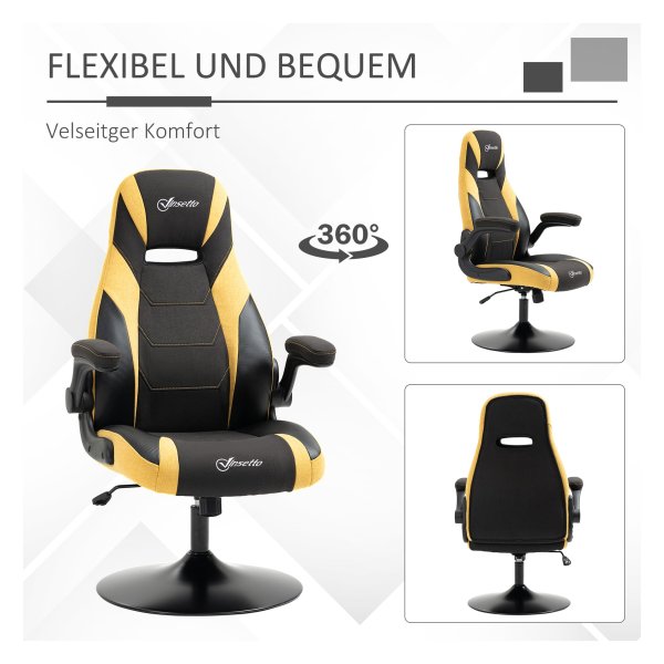 Bureaustoel – Gaming Gear – Verstelbare hoogte – Draaibaar – Geel+Zwart