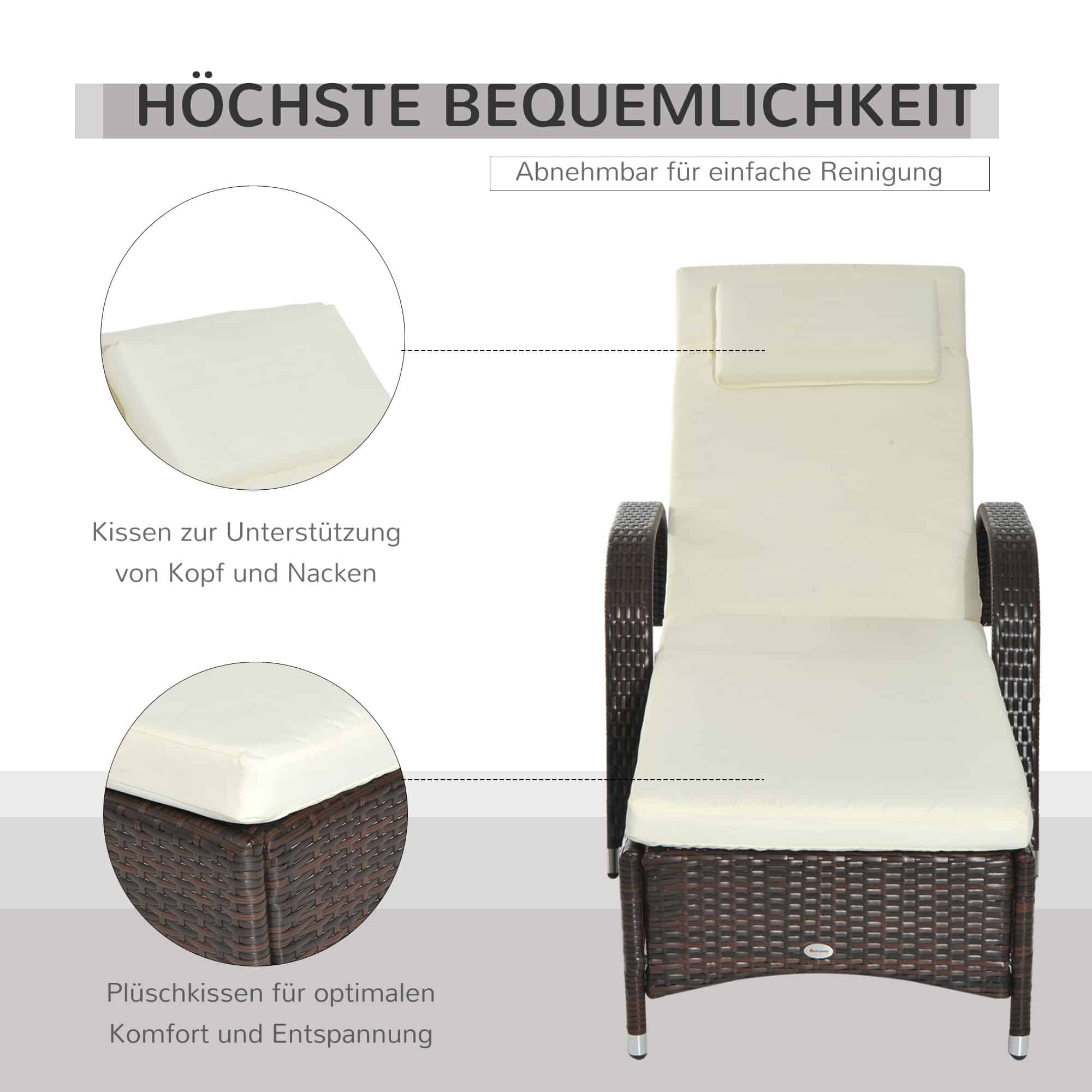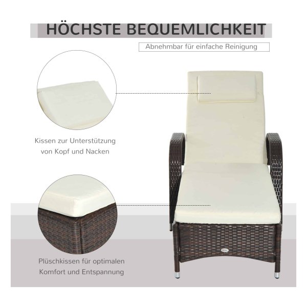 De tuinligstoel is ontworpen met oog voor details en functionaliteit. Het koffiebruin en crèmekleurige design past perfect in elke buitenomgeving. Met afmetingen van L200 x B73 x H (30-103) cm biedt deze stoel voldoende ruimte om comfortabel te liggen en te ontspannen. De rugleuning van B50 x H79 cm en het kussen van L37 x B17 x T5 cm zorgen voor optimale ondersteuning en comfort.