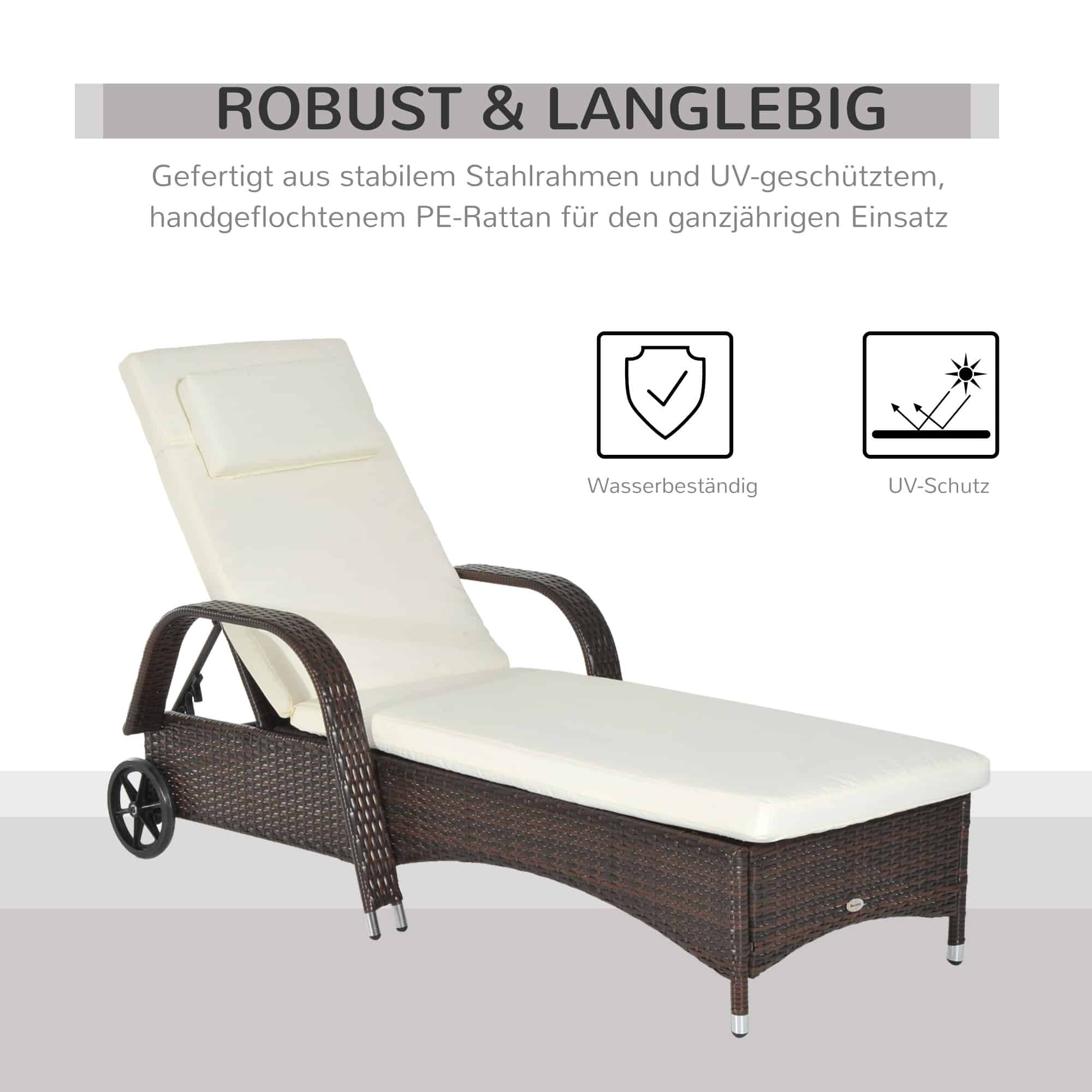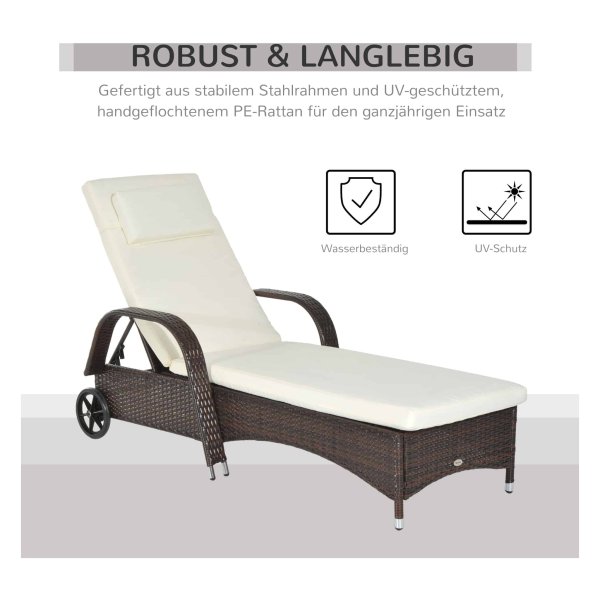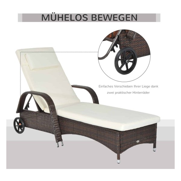 Tuinligstoel – Zen Garden – Verrijdbaar en Comfortabel – Koffiebruin
