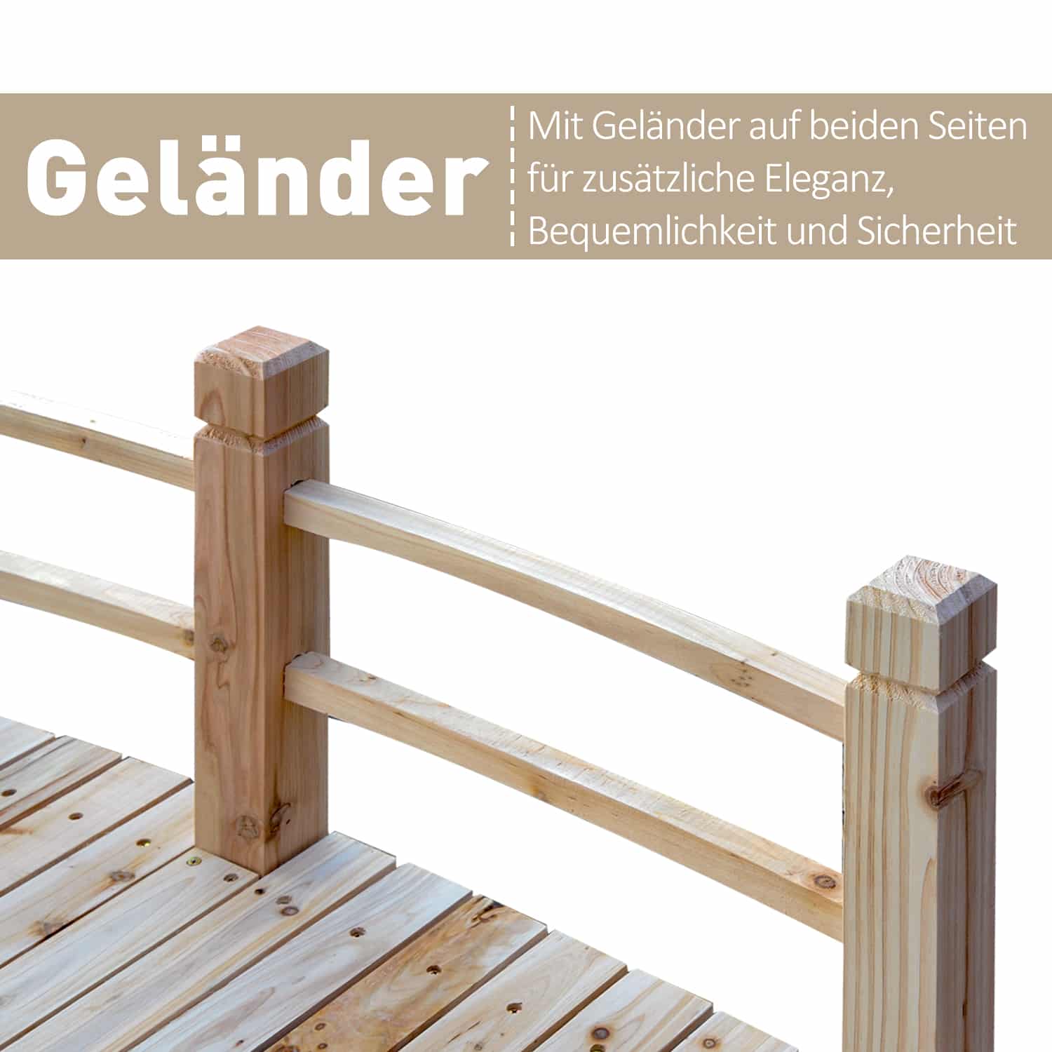 Het klassieke gebogen ontwerp van deze brug zorgt voor een charmante uitstraling in elke tuin. De gebogen reling met 3 berichten voegt niet alleen elegantie toe, maar zorgt ook voor een veilige oversteek over de brug.
