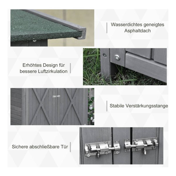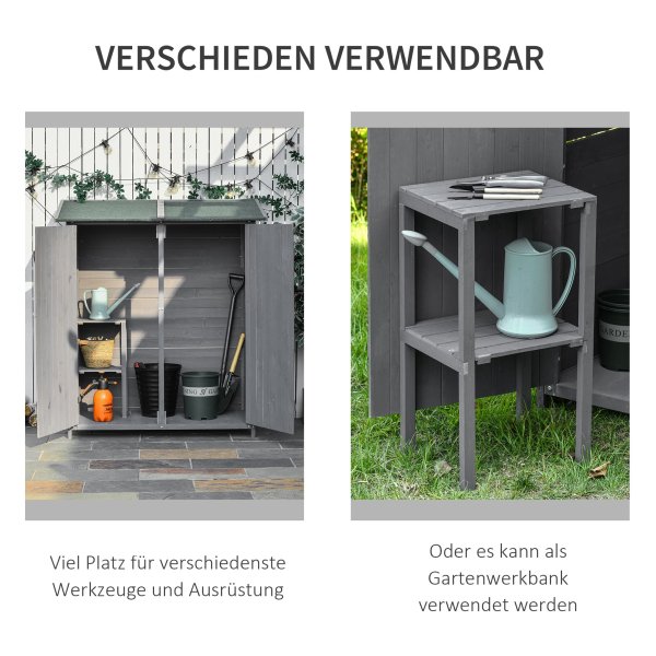 - Deze tuinkast biedt voldoende ruimte voor het opbergen van tuinapparatuur, gereedschap, plantenpotten en andere tuinaccessoires, waardoor uw tuin er altijd netjes uitziet.