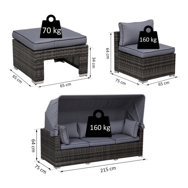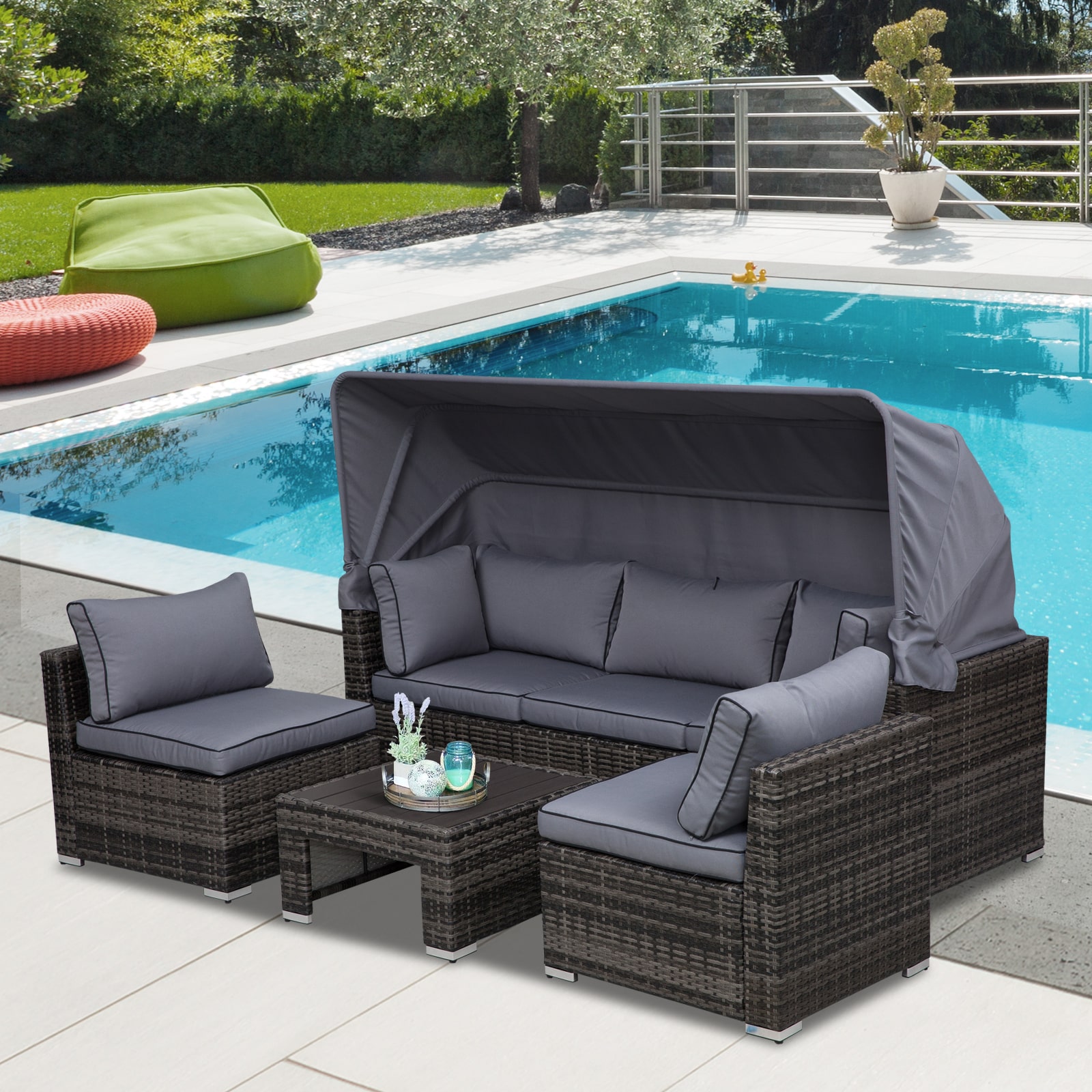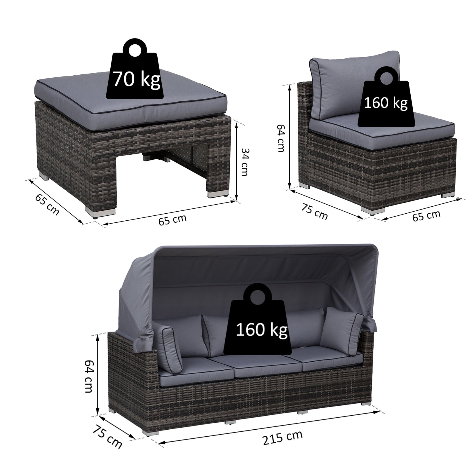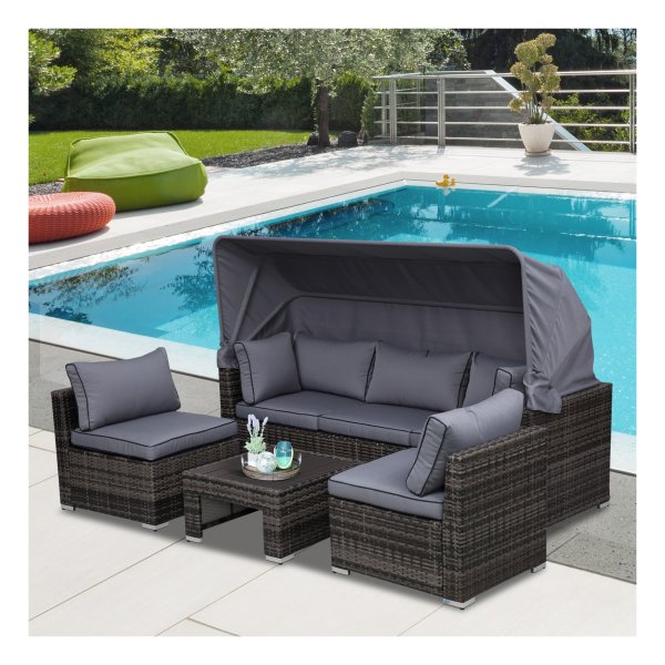 Loungeset – Rattan zitgroep – Zonnedak – Metaalgrijs