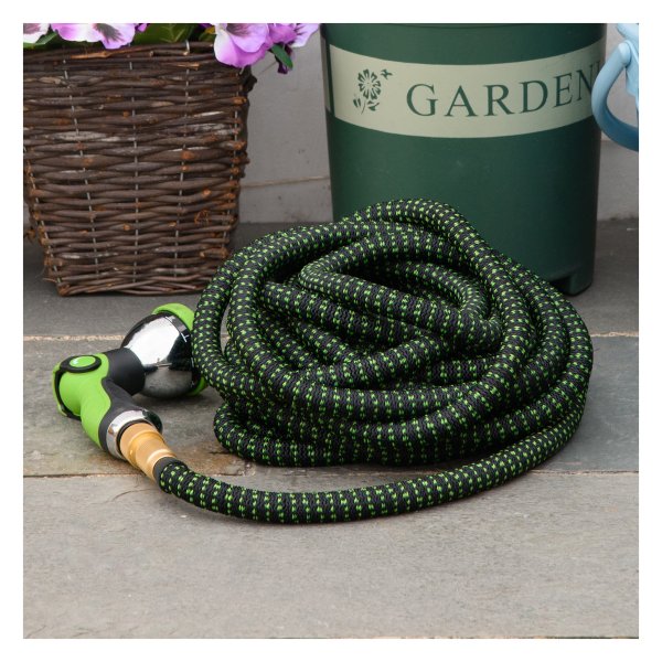 - Met de FlexiHose kun je elke hoek van je tuin comfortabel bereiken, omdat de slang zich uitstrekt tot drie keer zijn oorspronkelijke lengte. Zo hoef je nooit meer met een zware en onhandige slang te slepen!