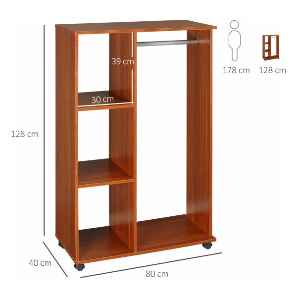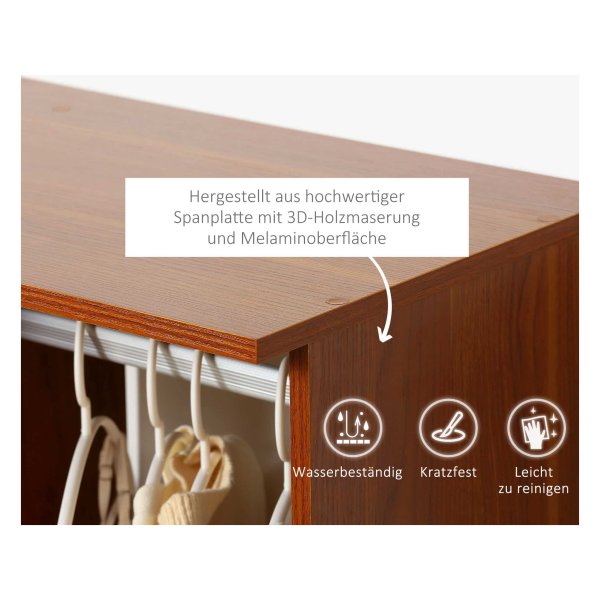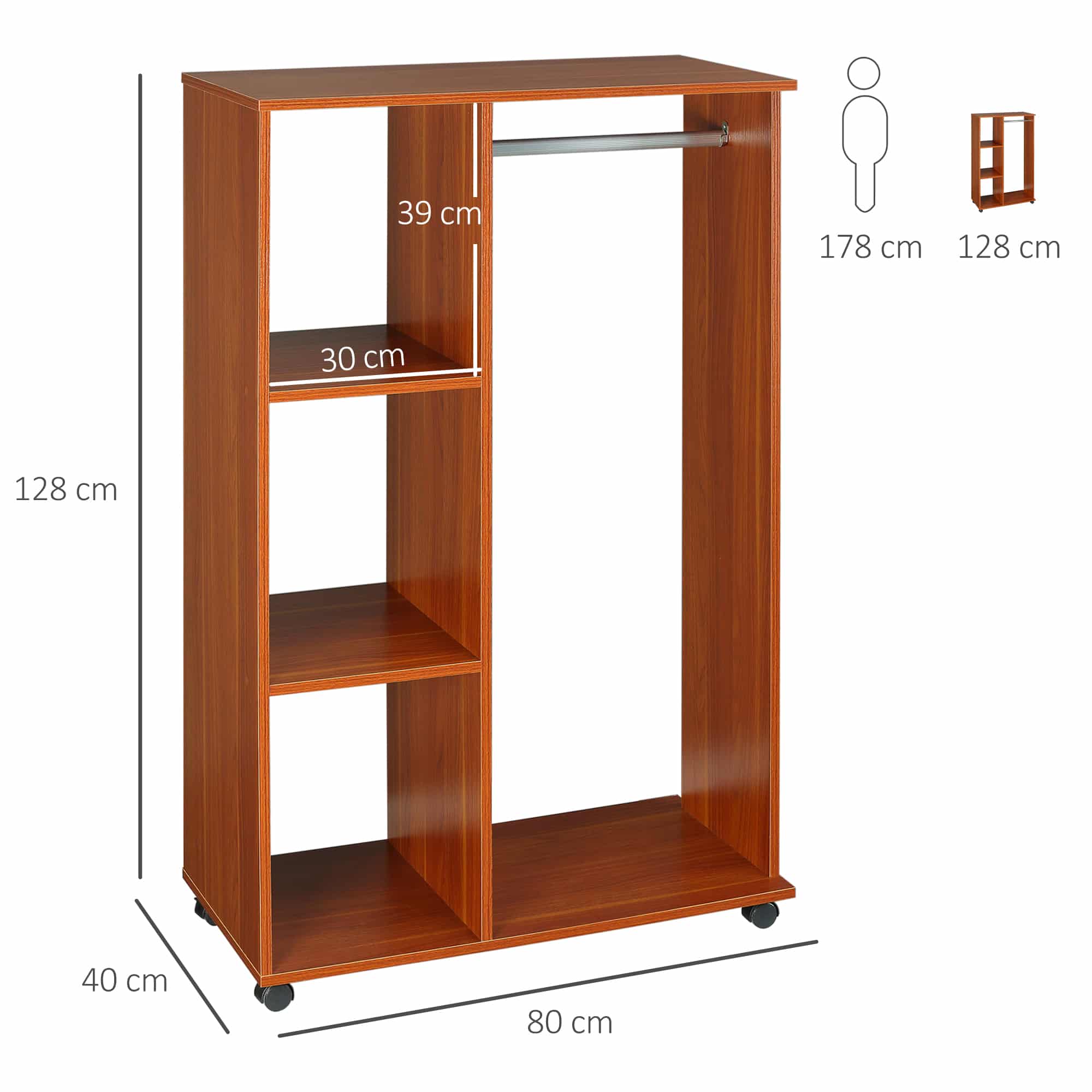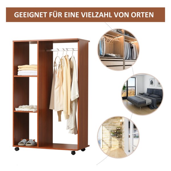 Verrijdbaar – Garderobemeubel – Planken – Kapstok – Walnootbruin