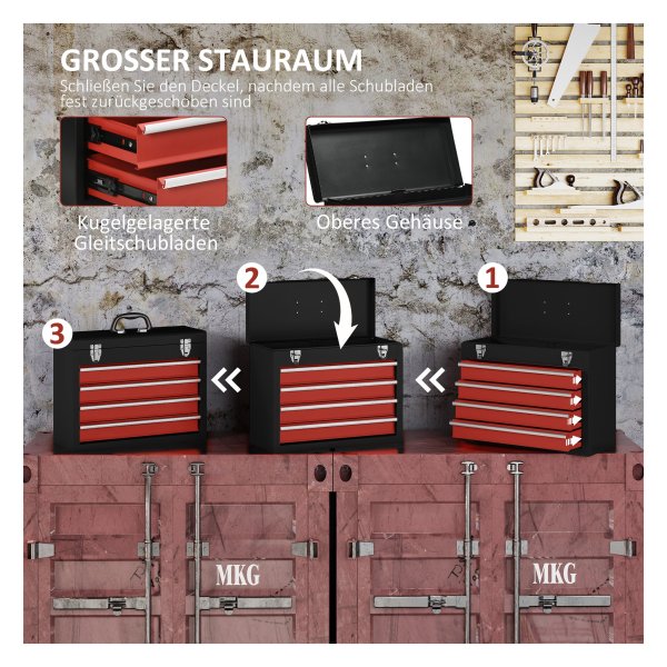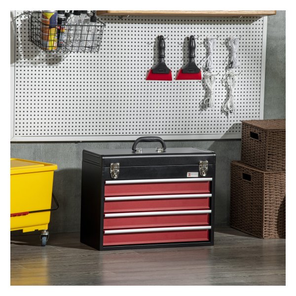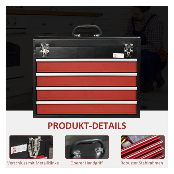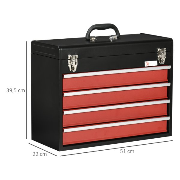Gereedschapskist – 4 laden – Vergrendelingsstaal – Zwart/Rood