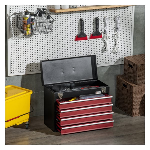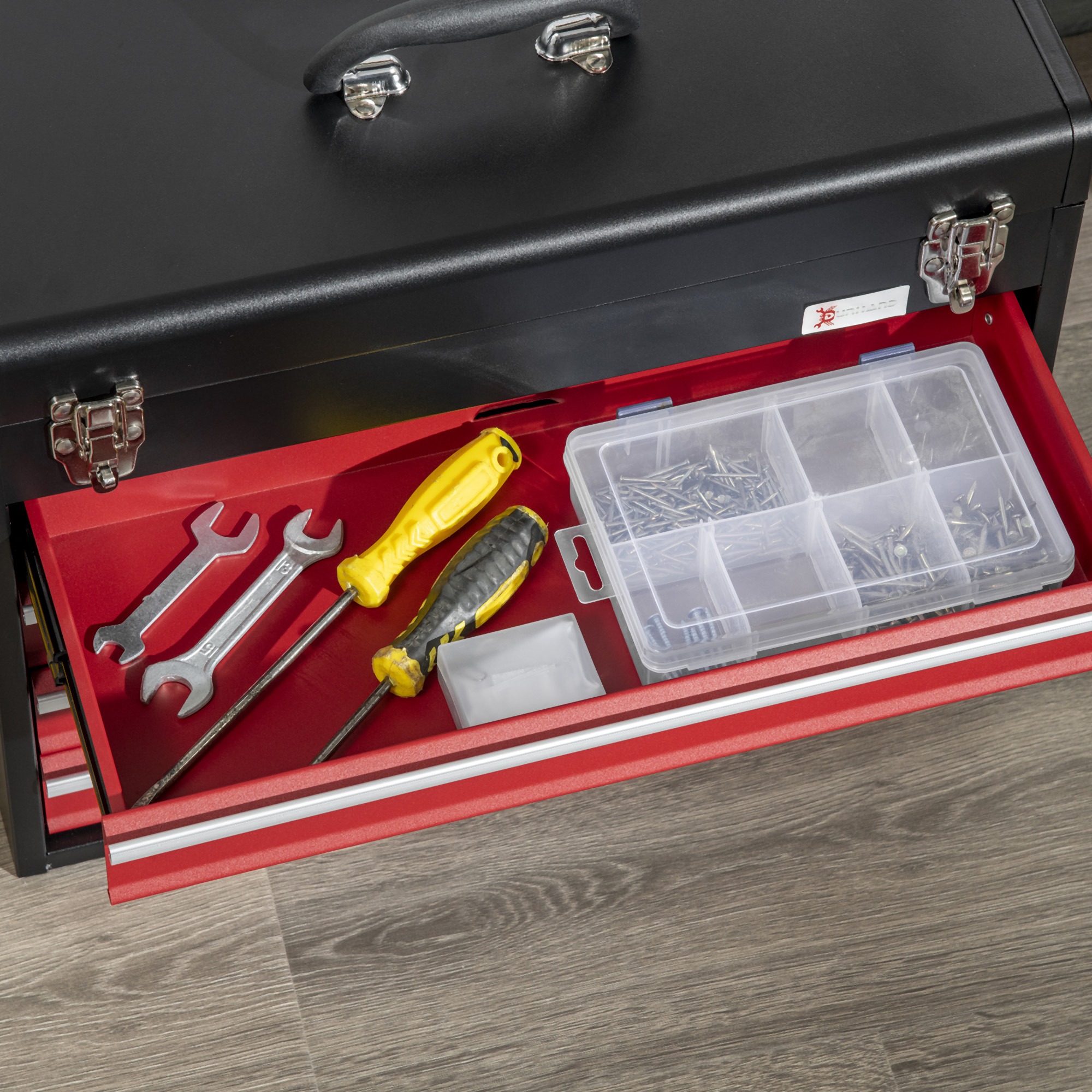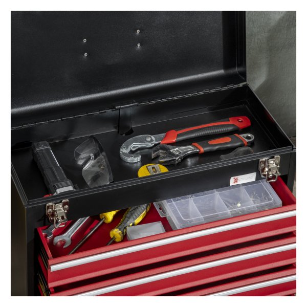 Gereedschapskist — 4 laden – Vergrendelingsstaal – Zwart/Rood