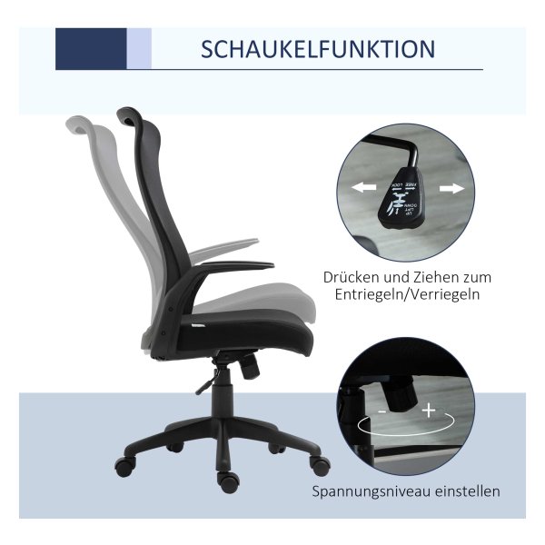 - Met de geïntegreerde schommelfunctie kunt u tijdens korte pauzes even ontspannen en uw rug strekken, waardoor u fris en alert blijft gedurende de dag.