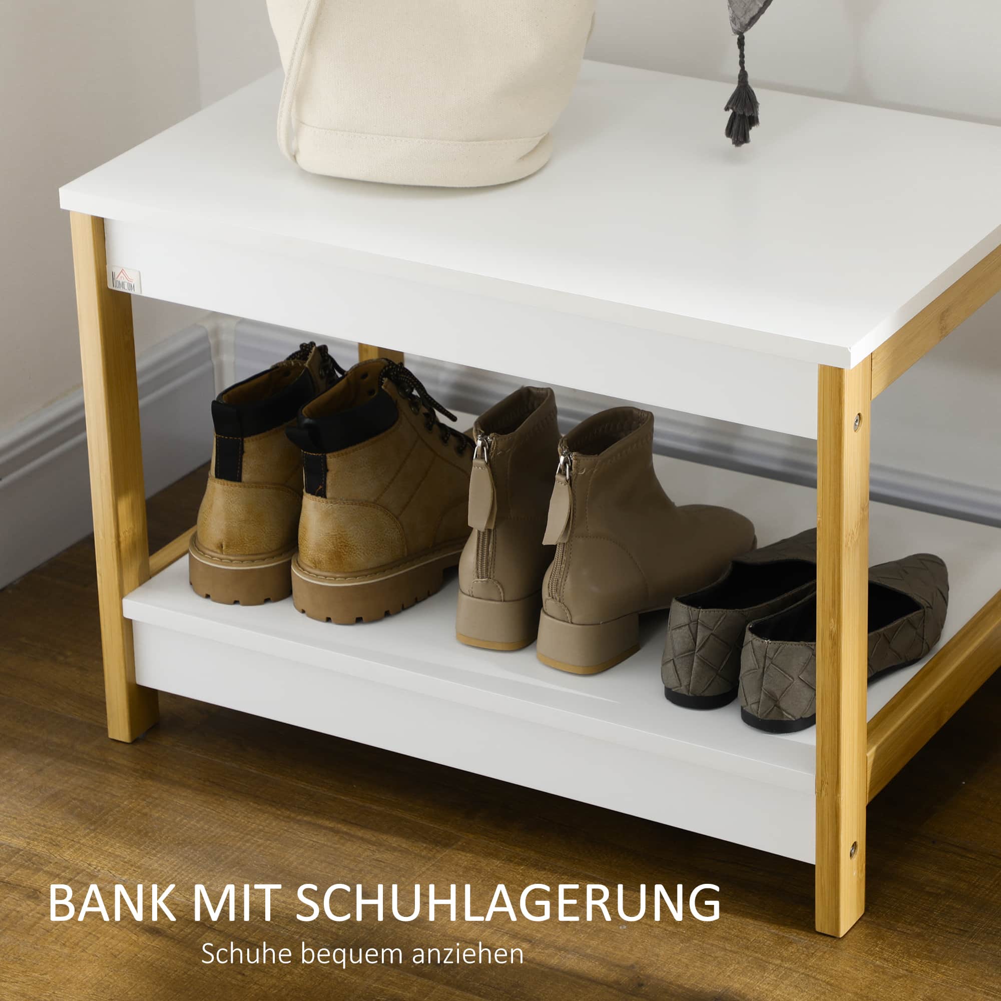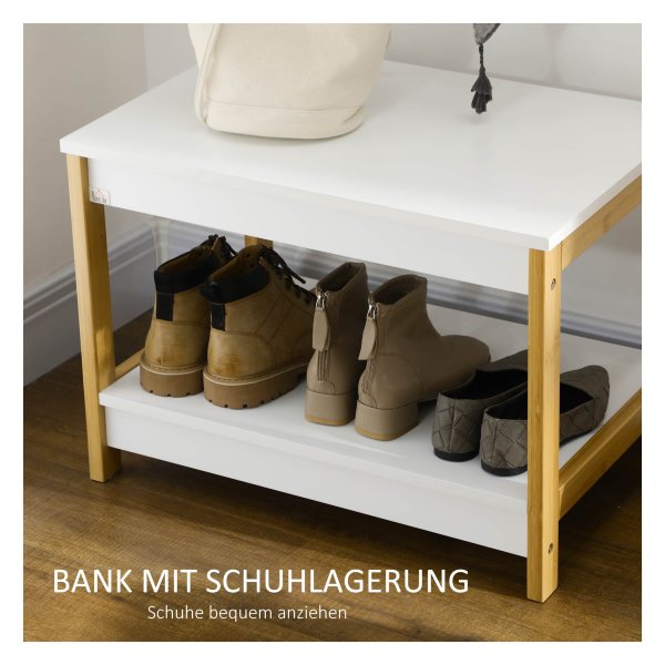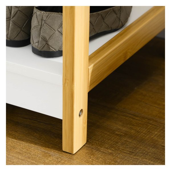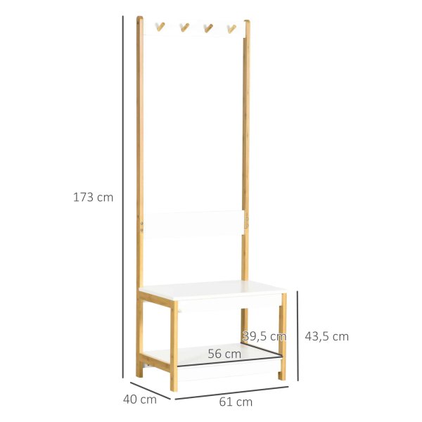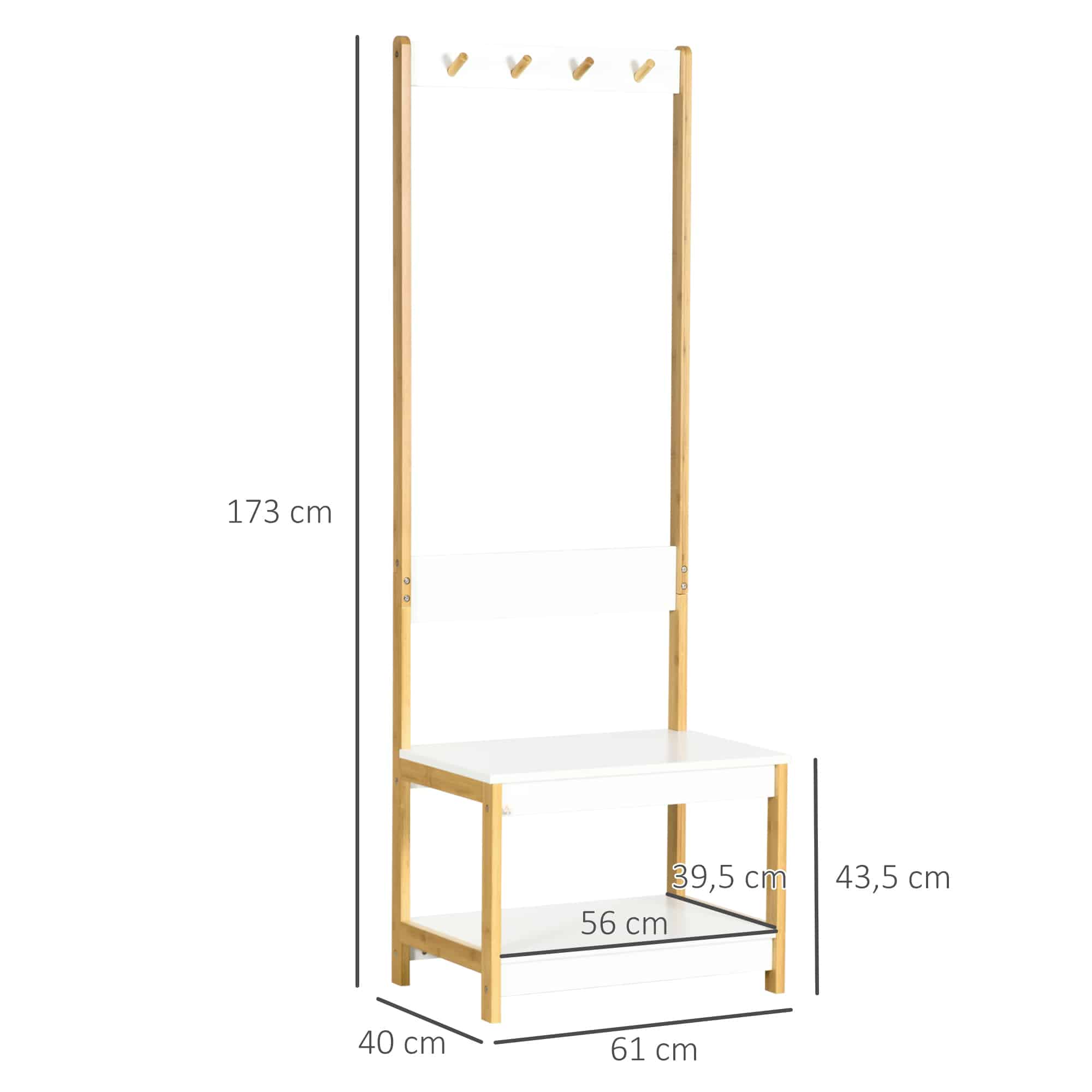 Het bamboe-frame van dit kledingrek past perfect bij verschillende interieurstijlen. De onderste plank biedt ruimte voor maximaal 3 paar schoenen (EU-maat: 43), zodat je gemakkelijk van schoeisel kunt wisselen terwijl je zit. Daarnaast zijn er 4 stabiele haken voor het ophangen van je hoeden, tassen en sjaals, waardoor je alles georganiseerd kunt houden.