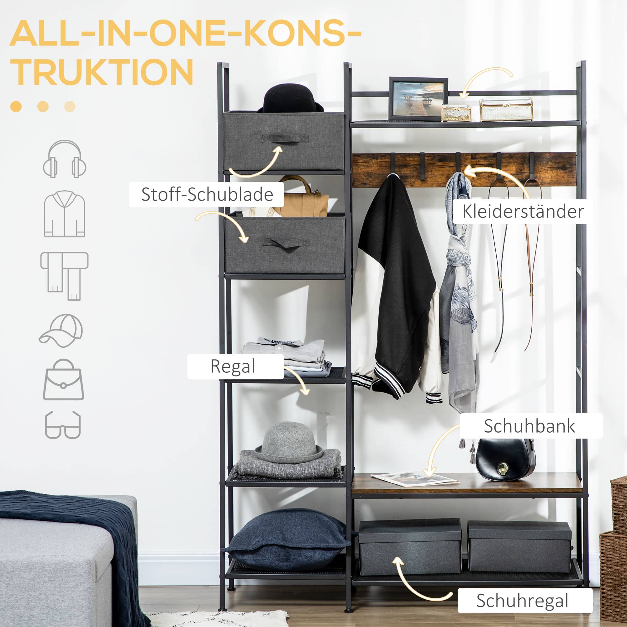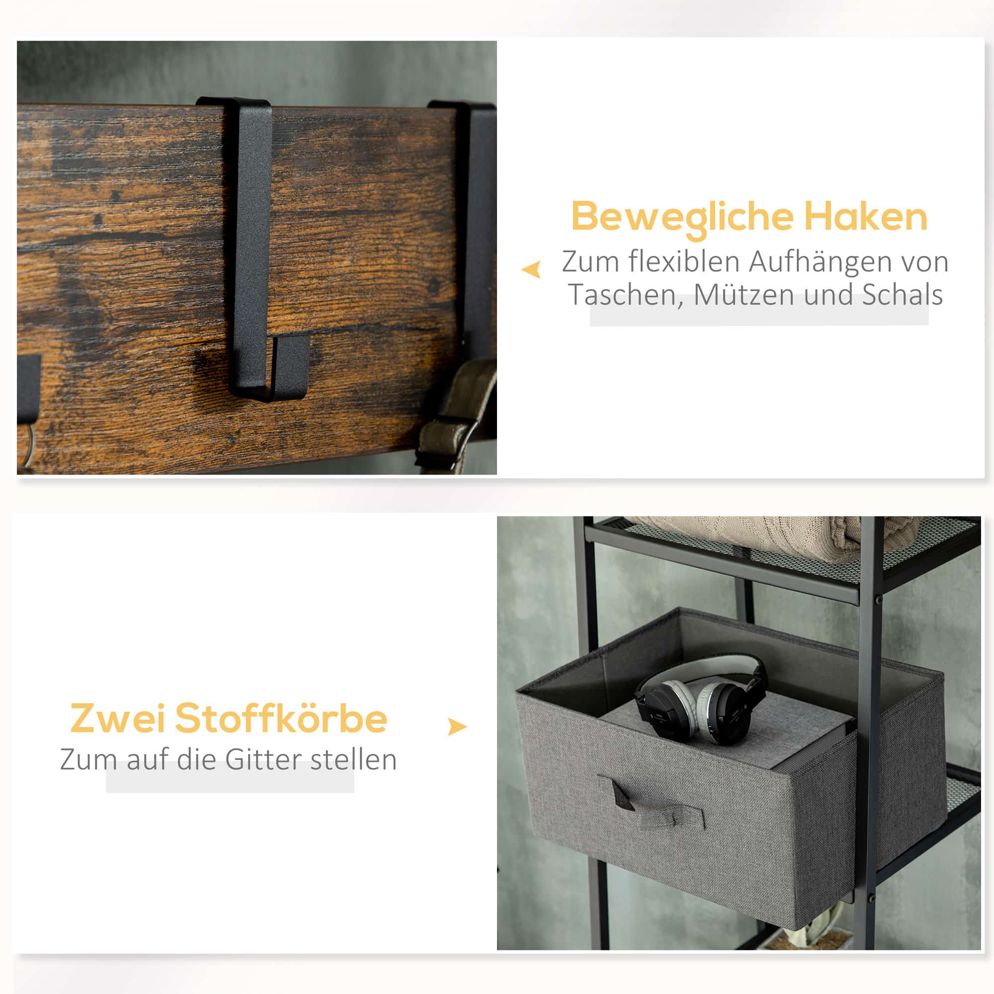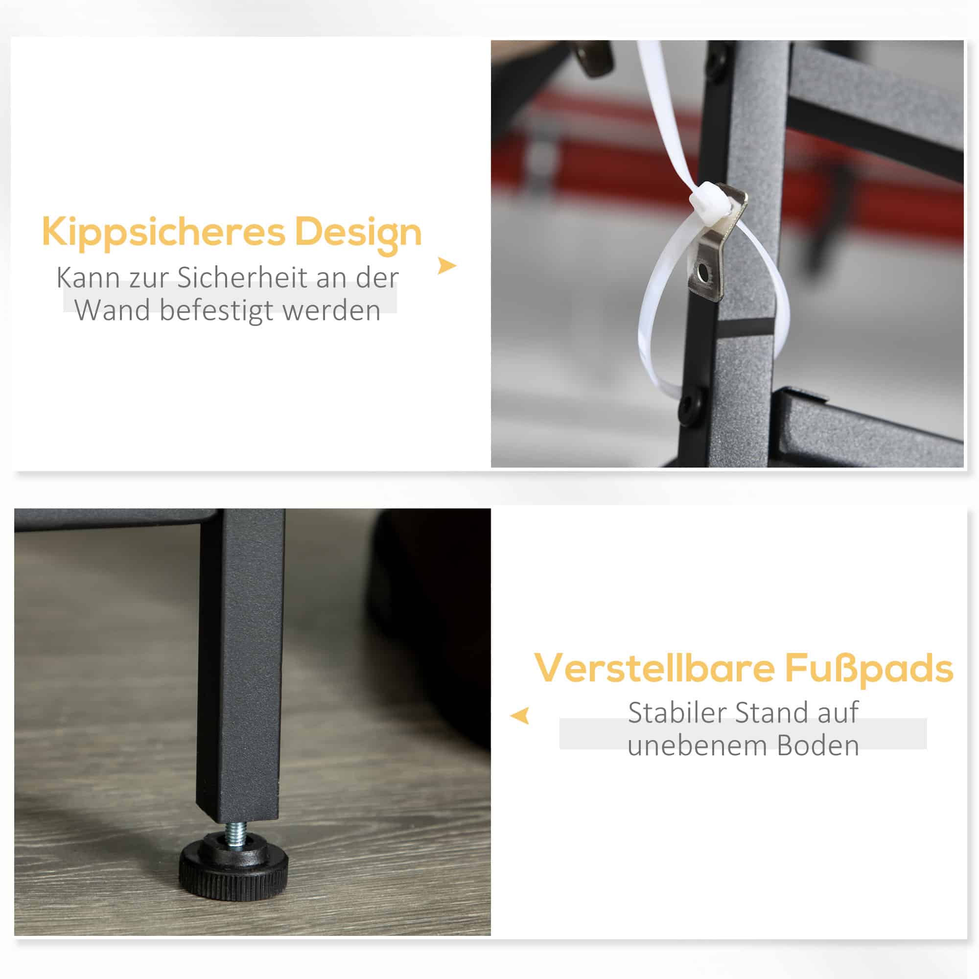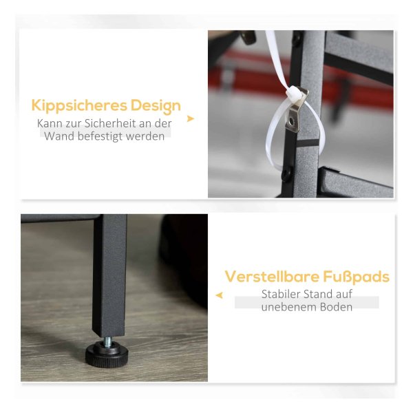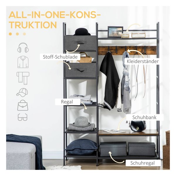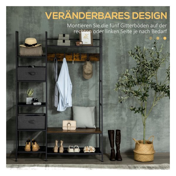 Dankzij het materiaal van spaanplaat, staal en fleece is deze kledingopslagbank duurzaam en stabiel. Het anti-kantel ontwerp aan de achterkant zorgt voor veilig gebruik en de verstelbare voeten zorgen voor stabiliteit.