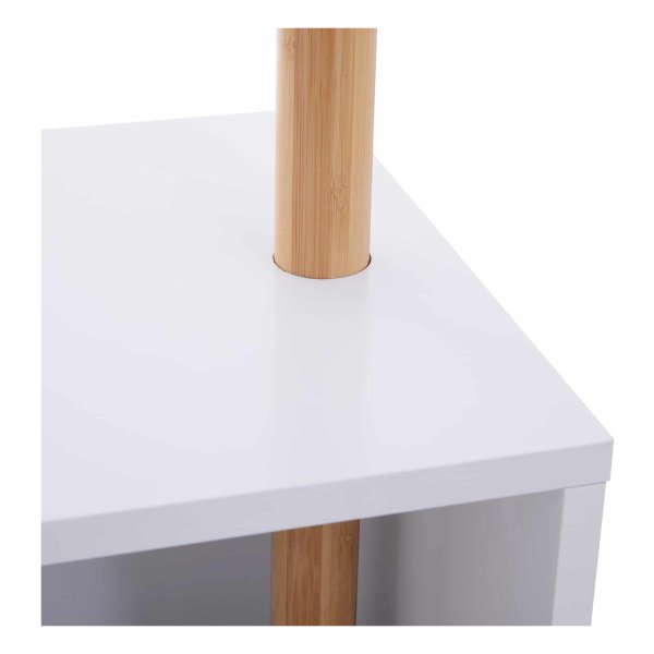 De kleur van dit kledingrek is wit gecombineerd met natuurlijk bamboe, wat zorgt voor een frisse en moderne uitstraling. Het materiaal bestaat uit MDF en bamboe, wat zorgt voor een stevige constructie. Met een gewicht van 6,6 kg en afmetingen van L40 x B30 x H180 cm is dit kledingrek compact en toch ruimtelijk.