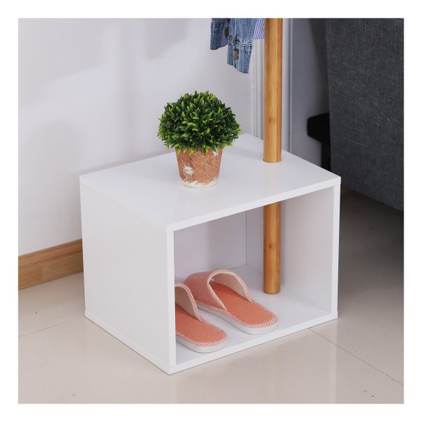 Het kledingrek kan op verschillende plaatsen in huis worden gebruikt, of het nu in de gang, hal of zelfs op kantoor is. Daarnaast is het rek voorzien van een bank waarop u comfortabel kunt zitten om uw schoenen aan te trekken of uit te doen. De opbergruimte onder de bank biedt tevens plaats voor tassen of schoenen.