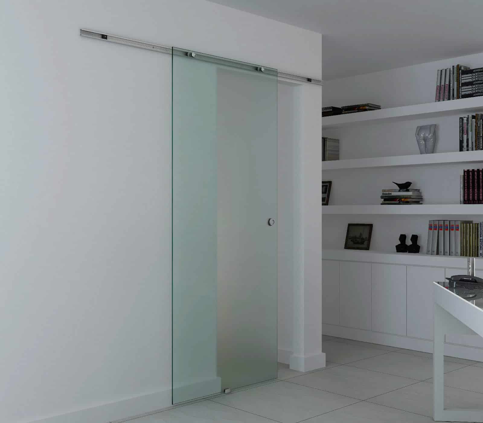 De Schuifdeur is geschikt voor zowel zakelijk als thuisgebruik. De matte afwerking van het glas geeft de deur een luxueuze uitstraling en zorgt tegelijkertijd voor privacy en natuurlijk licht in de ruimte. De aluminium looprails zorgen voor een stabiele werking van de deur.