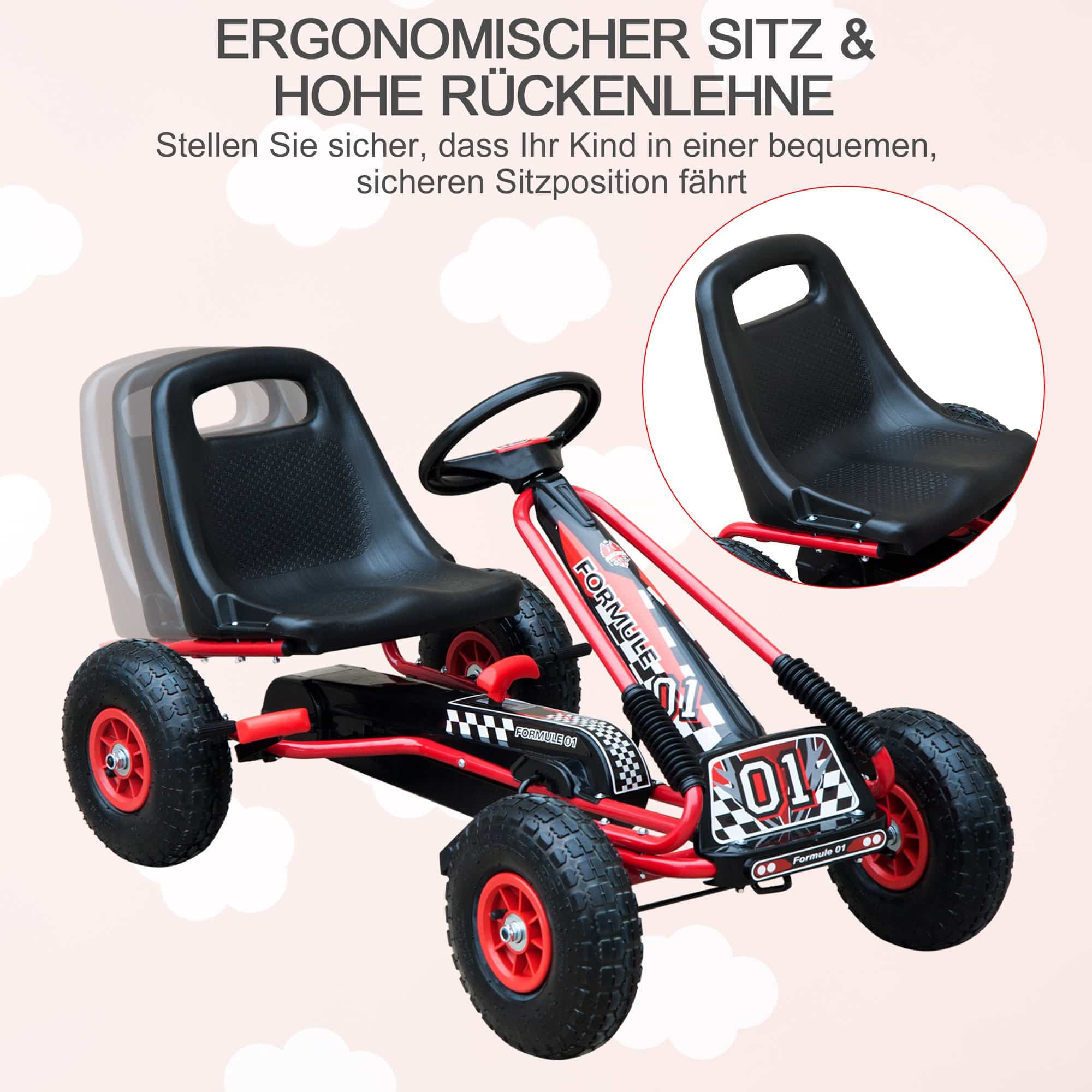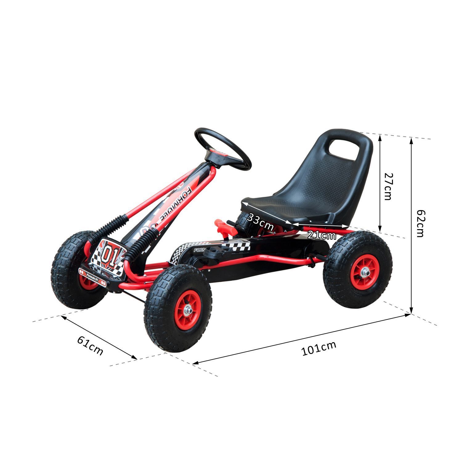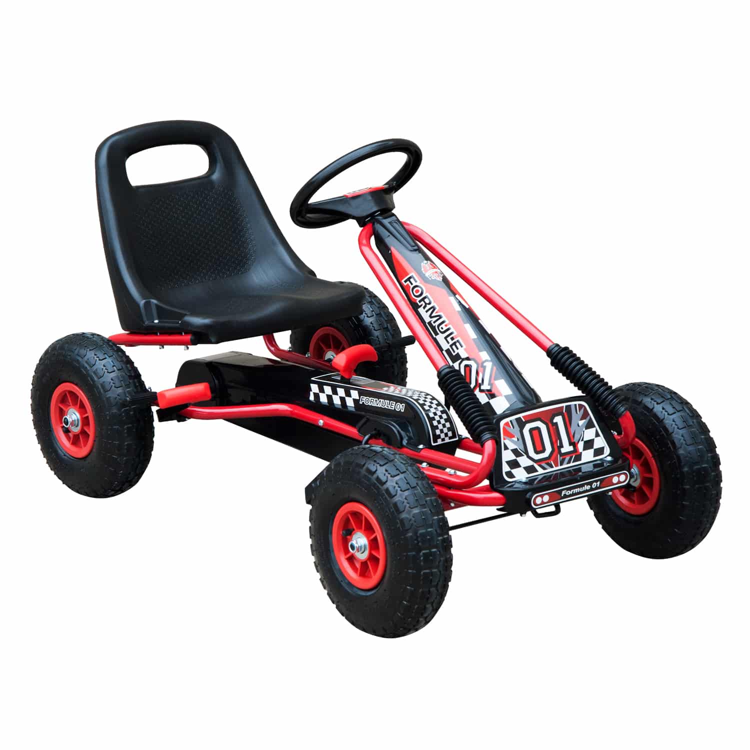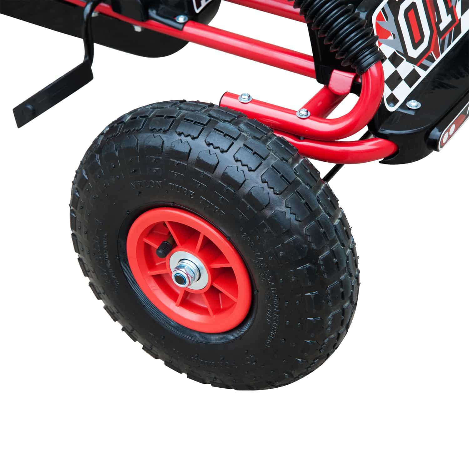 Het stalen frame van de trapauto zorgt voor maximale duurzaamheid, terwijl de opblaasbare banden ervoor zorgen dat je kind op verschillende ondergronden kan rijden. Bovendien is de ketting volledig gesloten, waardoor de veiligheid van je kind altijd gewaarborgd is.