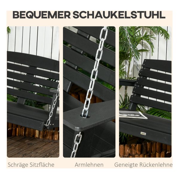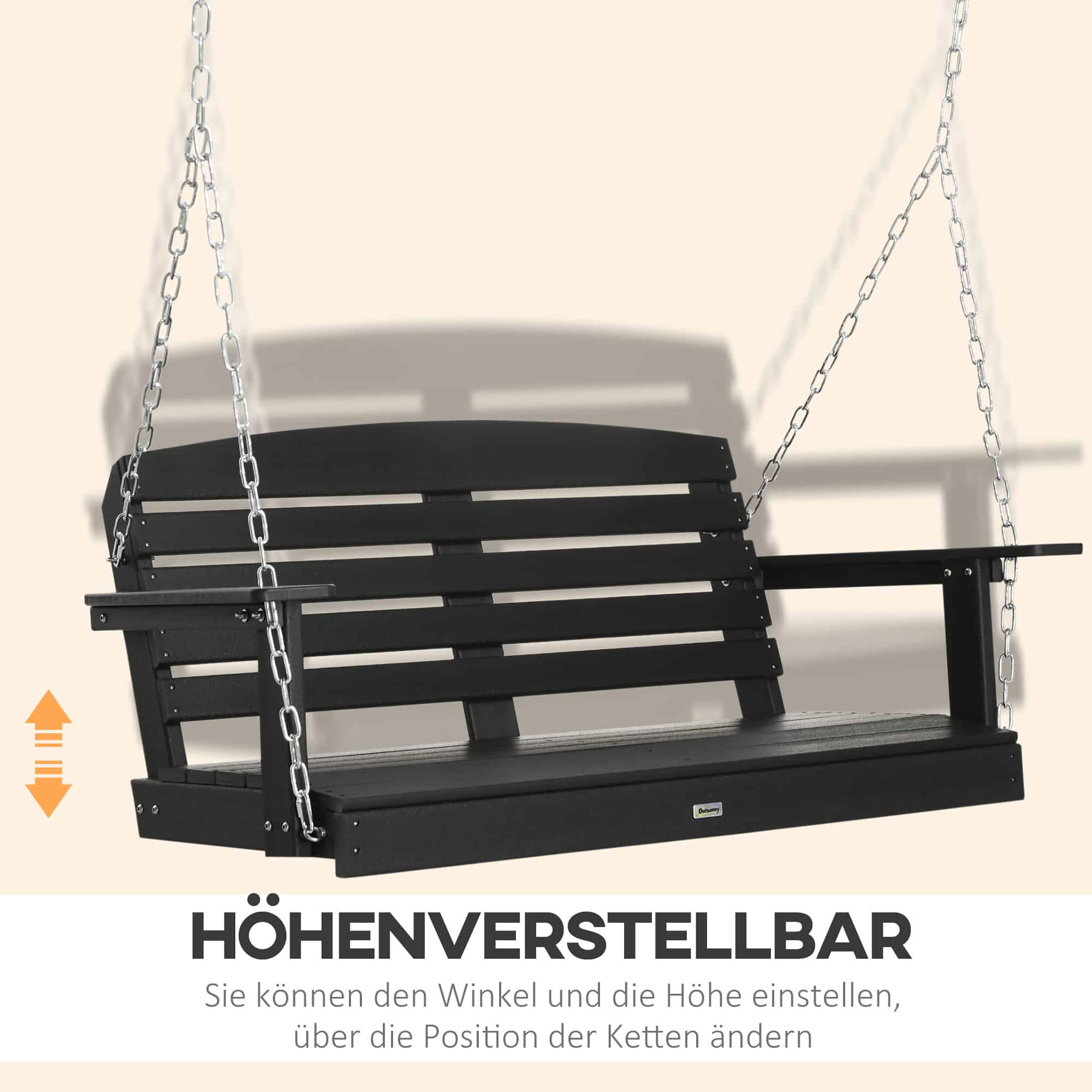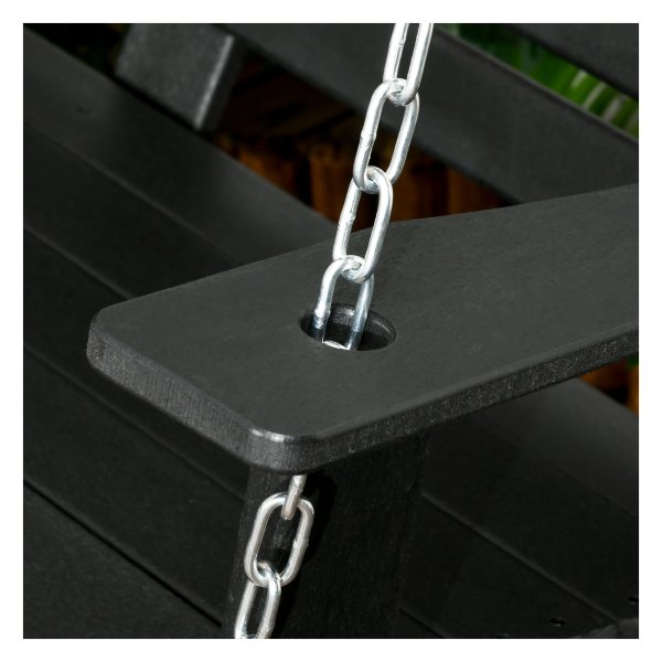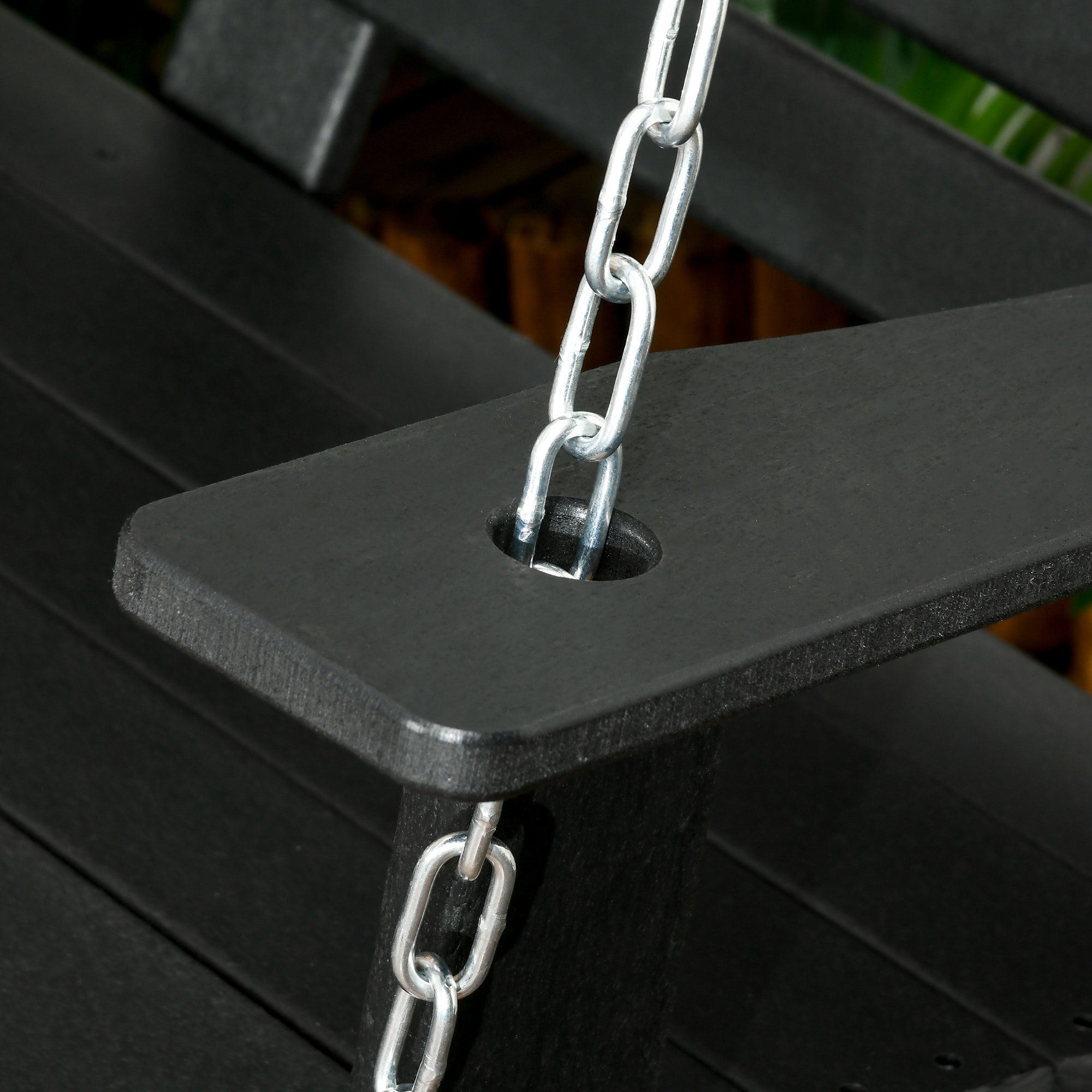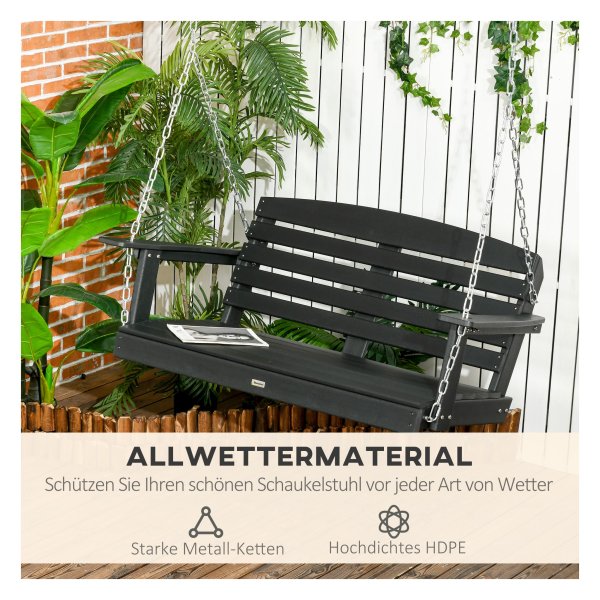 Gemaakt van HDPE materiaal, is deze hangbank bestand tegen verschillende weersomstandigheden. De zwarte kleur geeft een stijlvolle uitstraling aan uw tuin en blijft lang mooi, zelfs na blootstelling aan zon en regen.