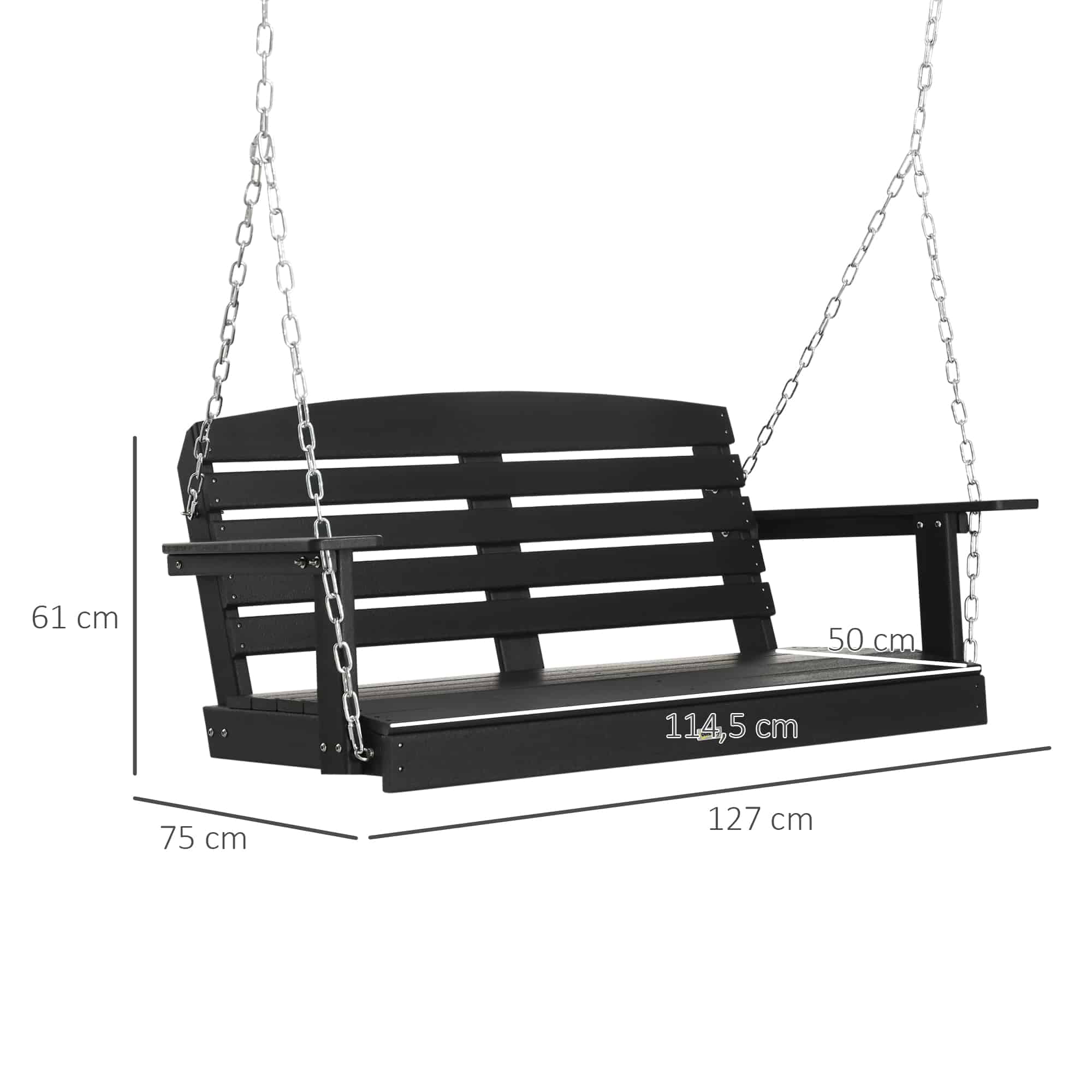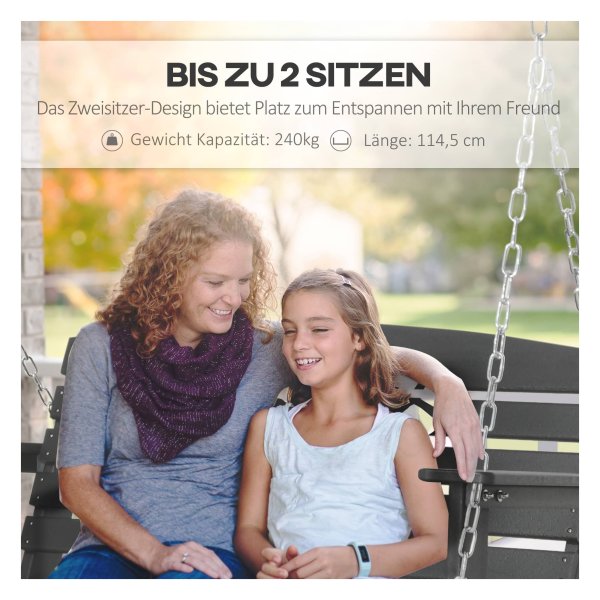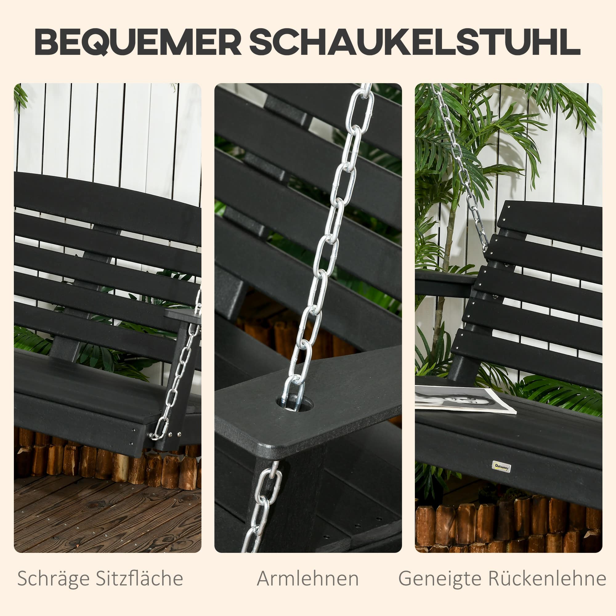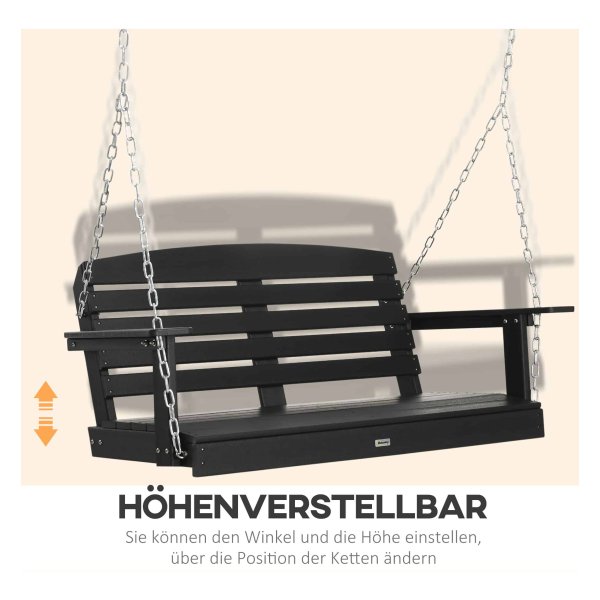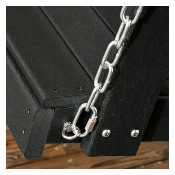 Gemaakt van HDPE materiaal, is deze hangbank bestand tegen verschillende weersomstandigheden. De zwarte kleur geeft een stijlvolle uitstraling aan uw tuin en blijft lang mooi, zelfs na blootstelling aan zon en regen.