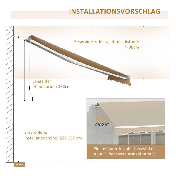 - Geschikt voor montage aan bijna alle wanden, ideaal voor balkons, terrassen en winkelramen