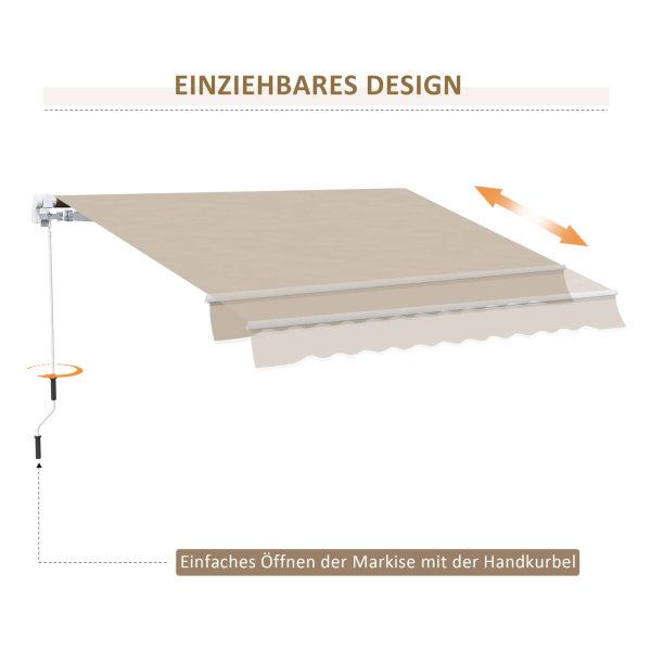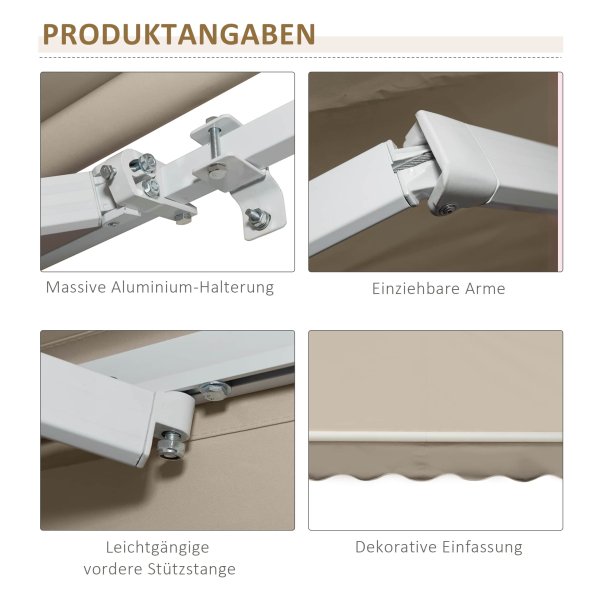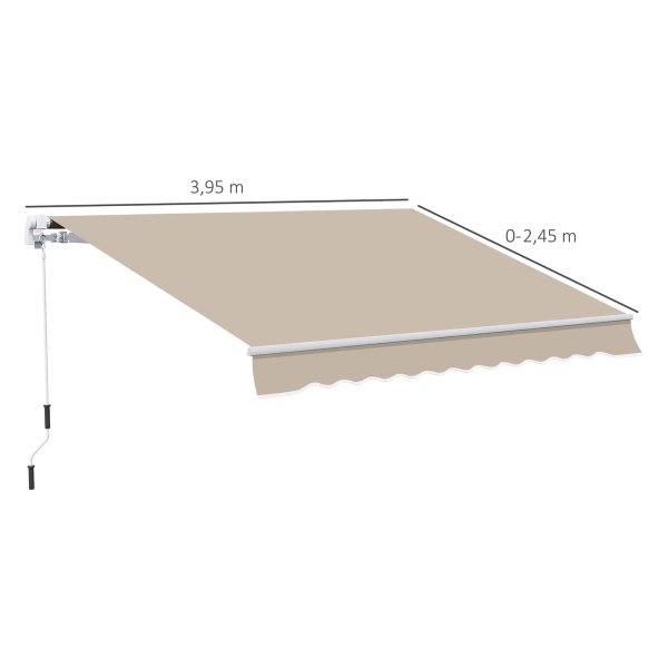 De Zonwerende balkonluifel wordt geleverd in een stijlvol wit en beige kleurenschema, passend bij elke buitenruimte. Het opvouwbare polyesterweefsel wordt ondersteund door twee intrekbare armen, een rol en een voorste steunstaaf, waardoor de luifel stevig en betrouwbaar is in alle weersomstandigheden. De totale grootte van de luifel is 395L x 245B, met een handvat van 1500 mm voor eenvoudige bediening.