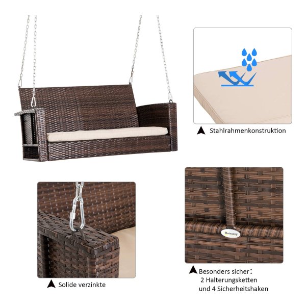 De Tuinschommelbank is voorzien van een stevig en roestbestendig steel support frame, wat zorgt voor duurzaamheid en stabiliteit. Met een draagkracht van tot wel 250 kg is deze schommelbank geschikt voor jou en je dierbaren. Bovendien zijn de zittingen gebogen en voorzien van zachte kussens voor een comfortabele en gezellige zithoek. De armleuningen bieden extra ondersteuning, waardoor je urenlang kunt ontspannen.