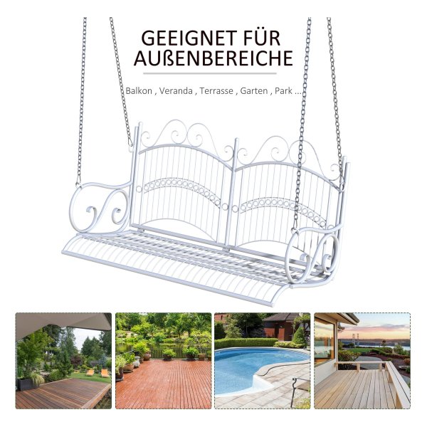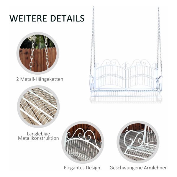 De Schommelbank Hansbank is gemaakt voor jouw ontspanning. Geniet samen met je partner van de rust op deze elegante schommelbank. Het witte metalen frame zorgt voor een tijdloze uitstraling die perfect past in elke tuinomgeving.
