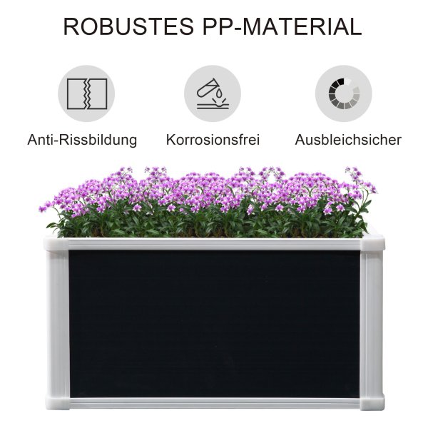 Dankzij het verhoogde ontwerp van deze plantenbak worden uw planten beschermd tegen ongedierte en onkruid. De stevige plastic constructie zorgt voor langdurig gebruik in alle weersomstandigheden, waardoor u jarenlang van uw tuin kunt genieten. Het afvoersysteem van de bak zorgt ervoor dat overtollig water effectief wordt afgevoerd, wat de gezondheid van uw planten bevordert.