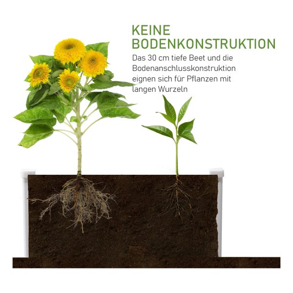 - Ideale diepte van 30 cm voor planten met lange wortels