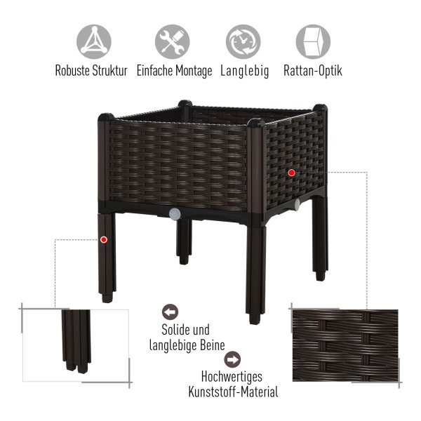 Deze bloembak is geschikt voor tuinen, balkons en terrassen. Het is eenvoudig te monteren en houdt uw planten gezond. De diepte van de bloembak maakt het mogelijk om een grote verscheidenheid aan planten te kweken.