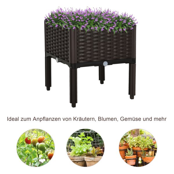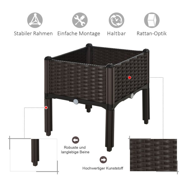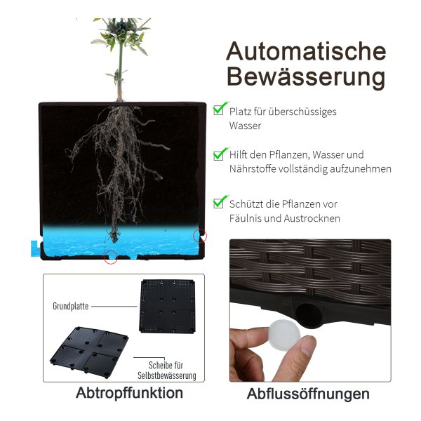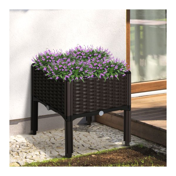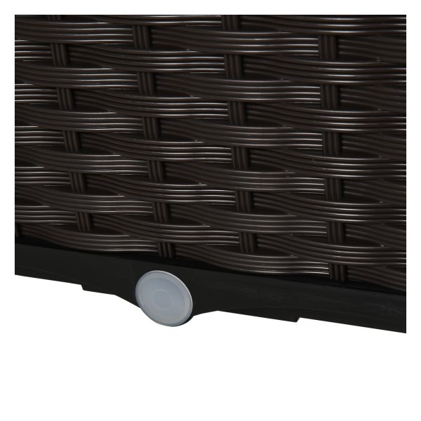 Deze plantenbak heeft een prachtig rotan stijl design dat perfect past in elke buitenomgeving. Het bruine kleurenschema zorgt voor een warme en uitnodigende uitstraling, waardoor uw tuin of balkon een gezellige sfeer krijgt.