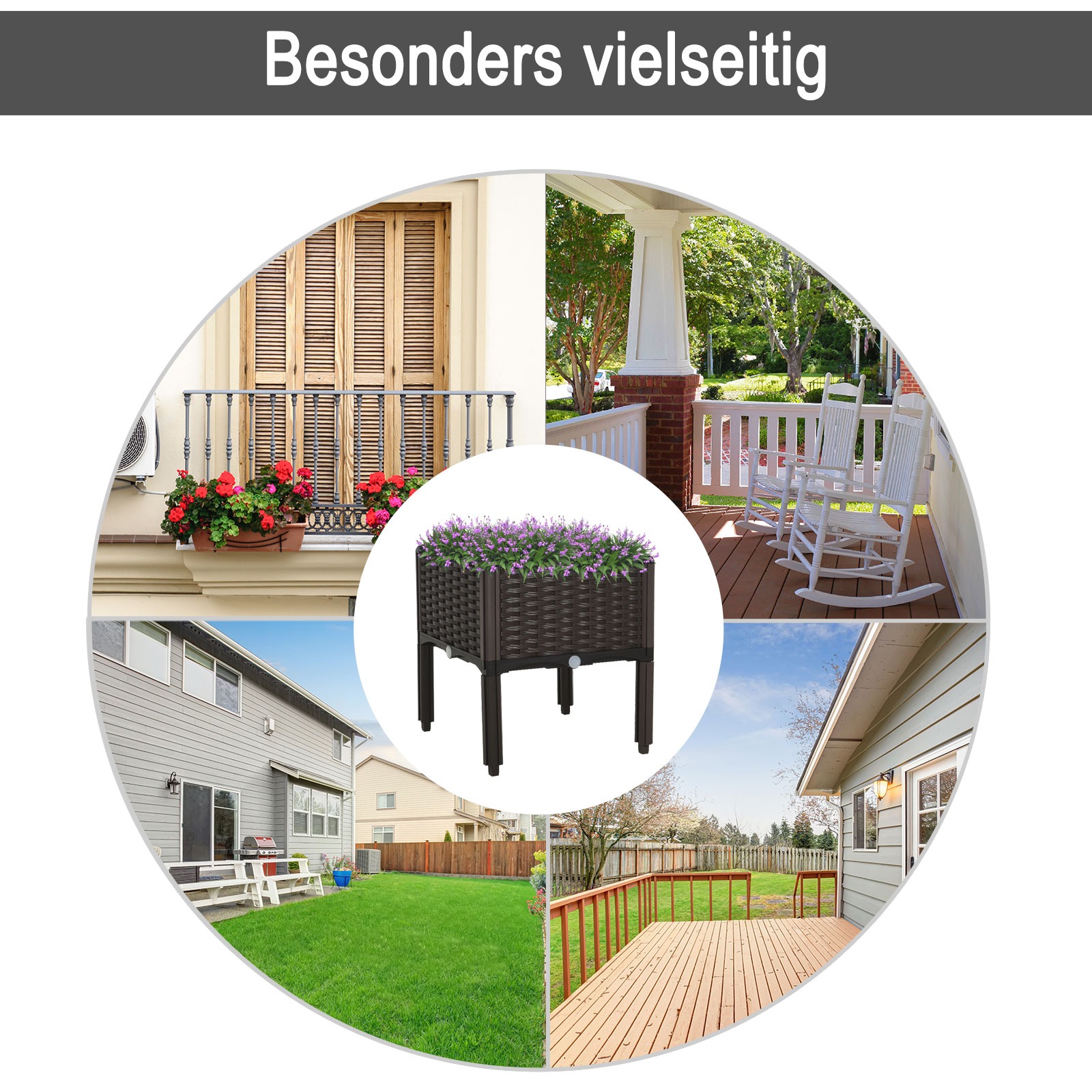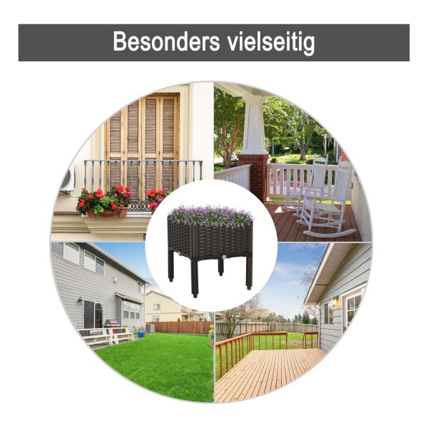 Gemaakt van robuust plastic, is deze bloembak zowel lichtgewicht als duurzaam. U kunt jarenlang genieten van deze prachtige plantenbak zonder dat deze onderhevig is aan slijtage of breuk. Het materiaal is bestand tegen alle weersomstandigheden, waardoor u er het hele jaar door van kunt genieten.