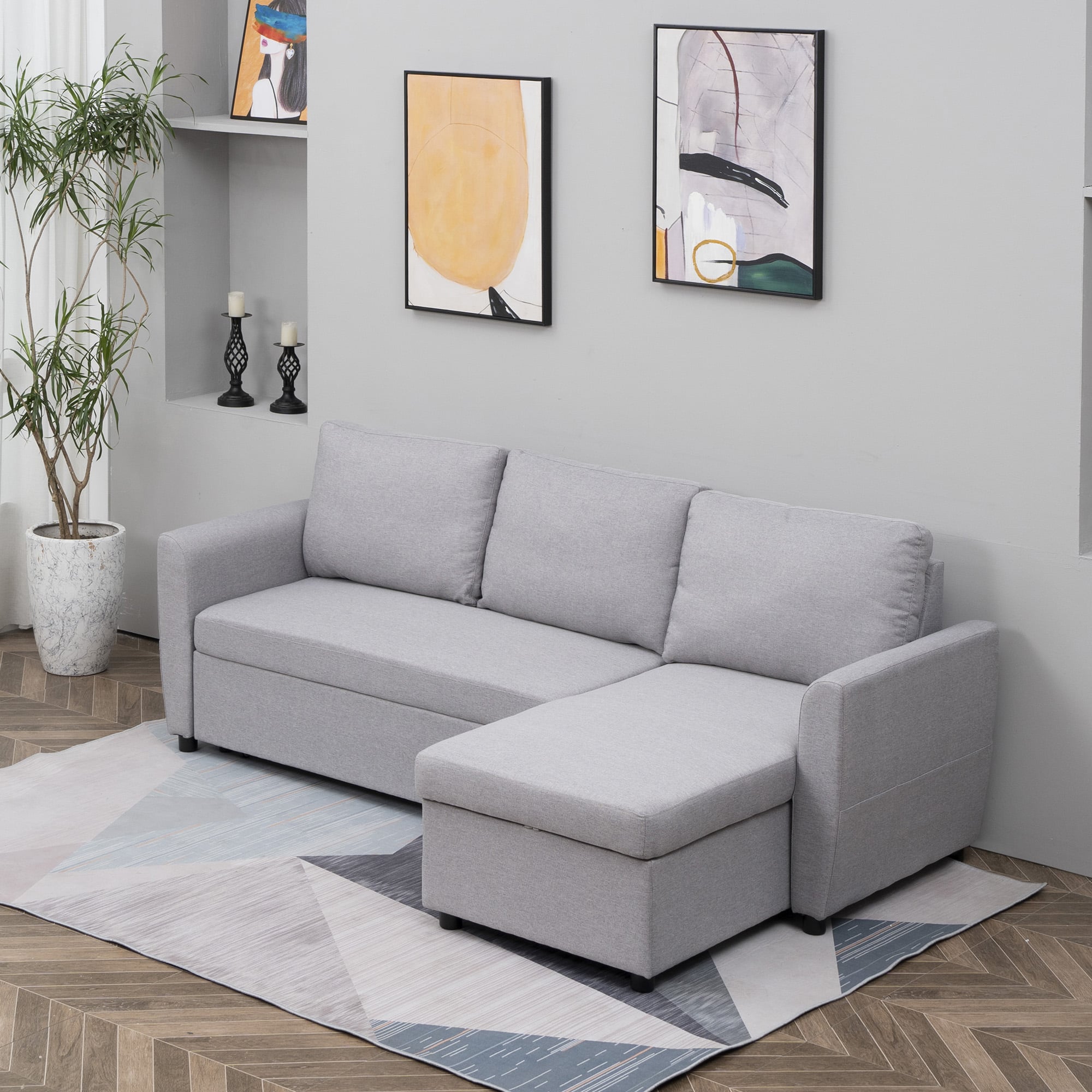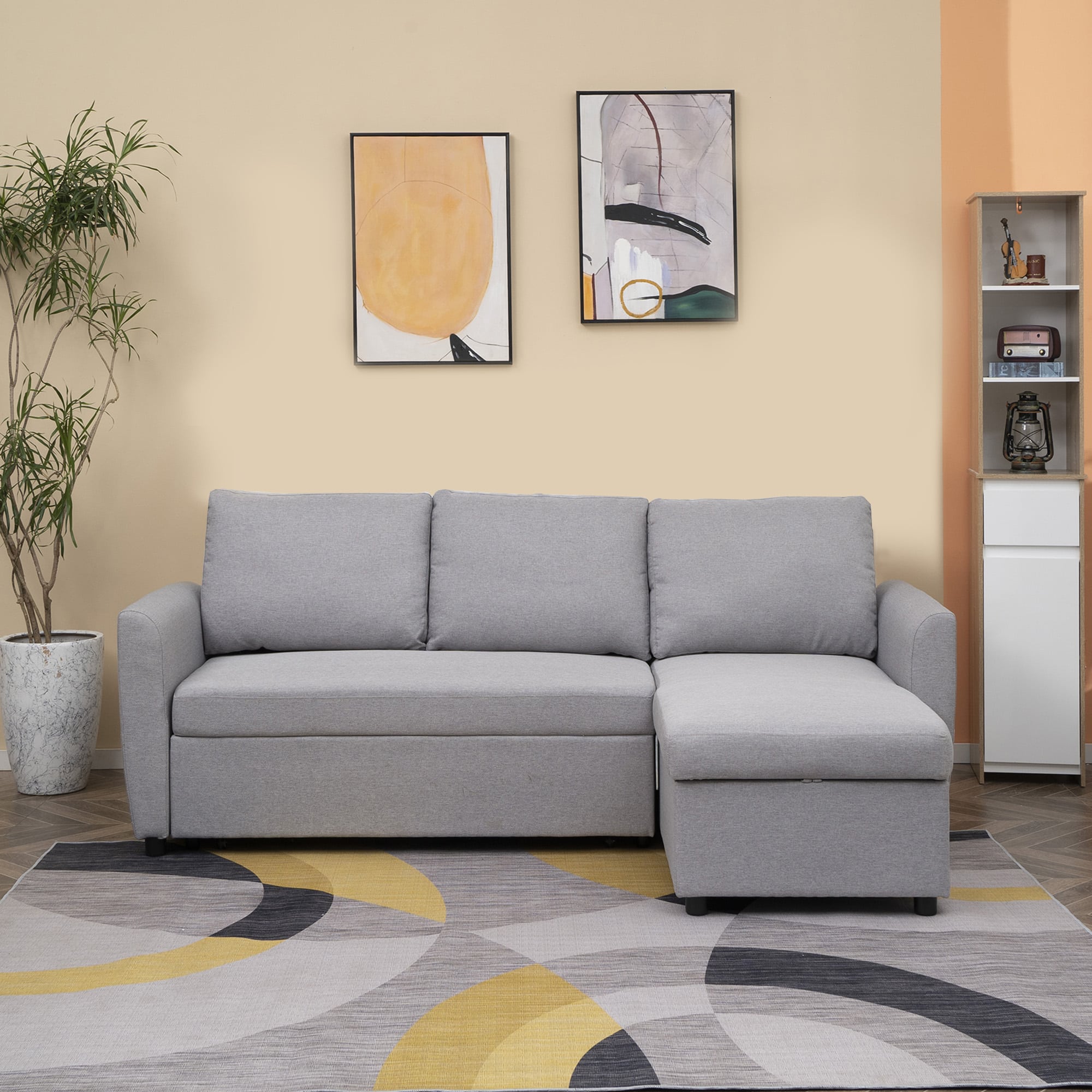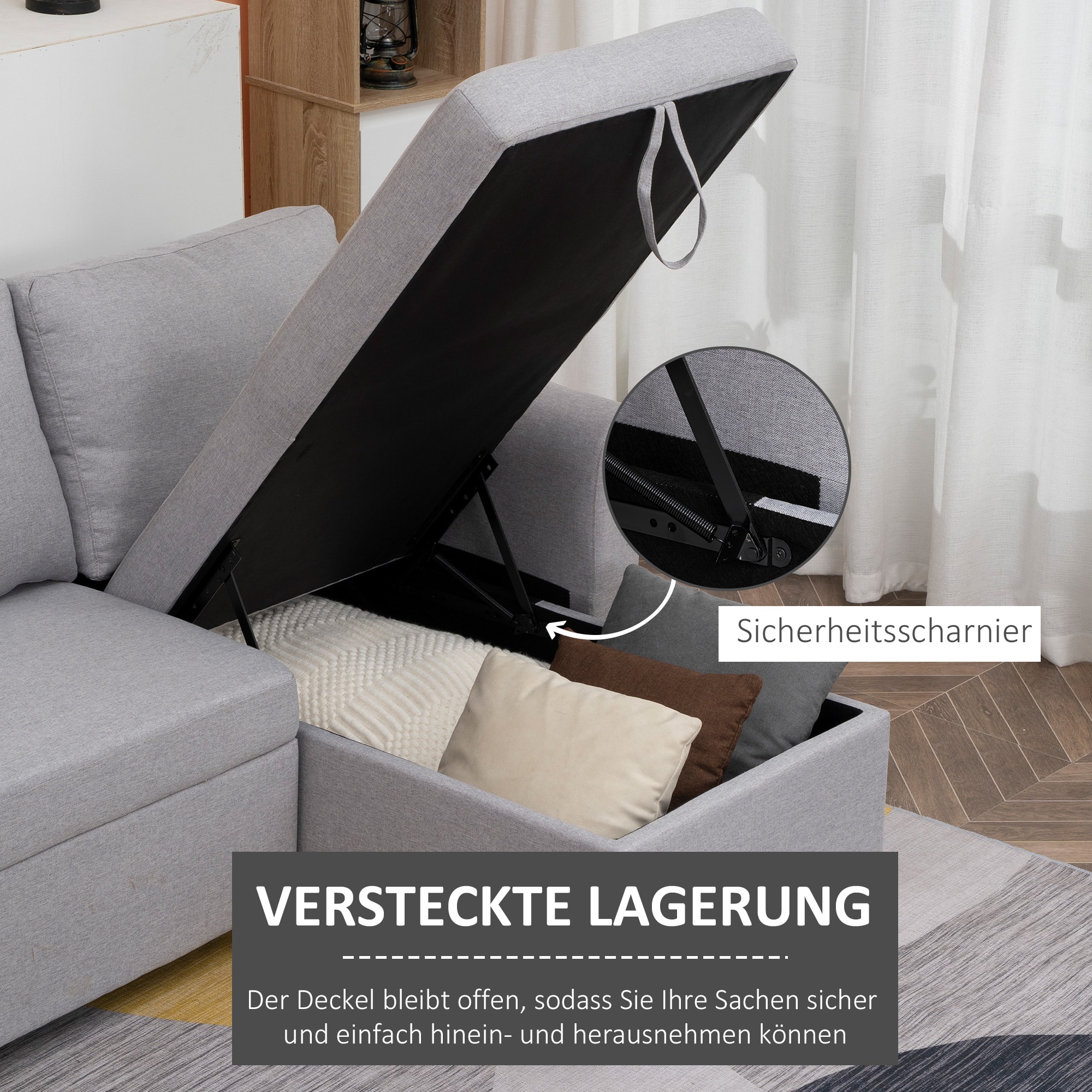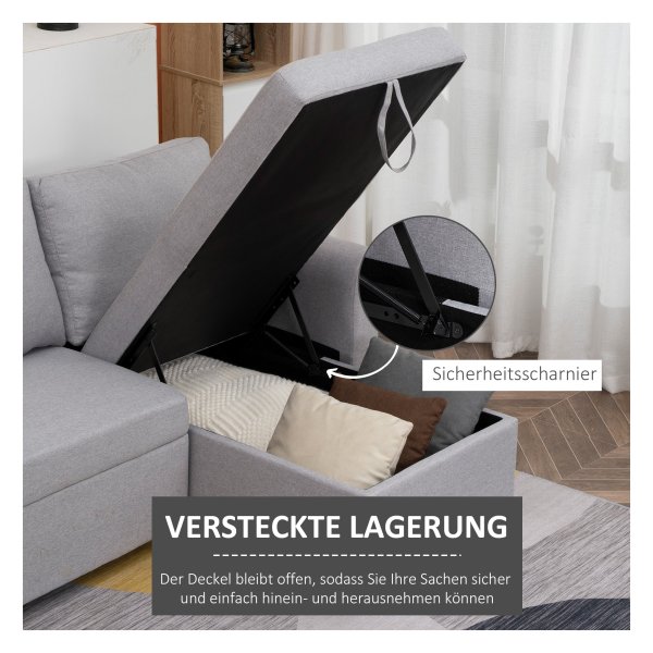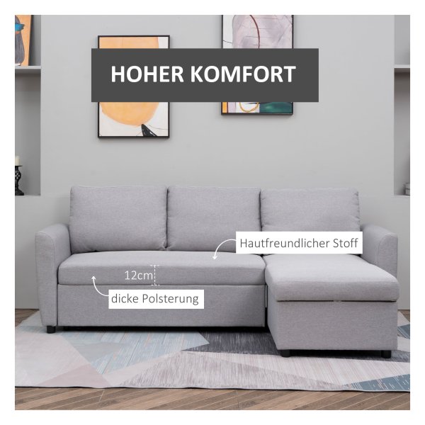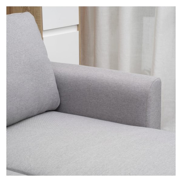 Deze hoekbank is gemaakt van linnenachtig polyester, hoogwaardig schuim en pp plastic voor duurzaamheid en comfort. De dikke schuimvulling zorgt voor uitzonderlijk zitcomfort, terwijl de ademende stof eenvoudig te onderhouden is voor langdurig gebruik.
