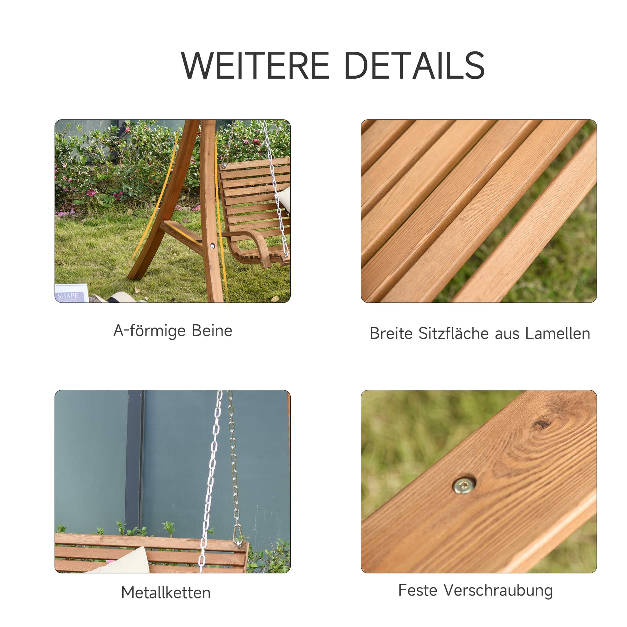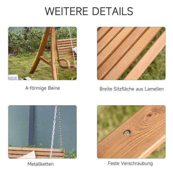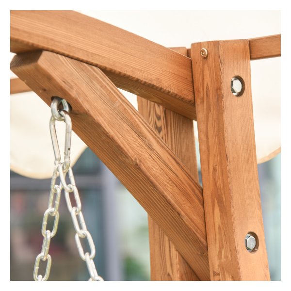 - De larikshouten constructie van de tuinschommelbank zorgt voor stabiliteit en duurzaamheid, zodat je er jarenlang van kunt genieten.