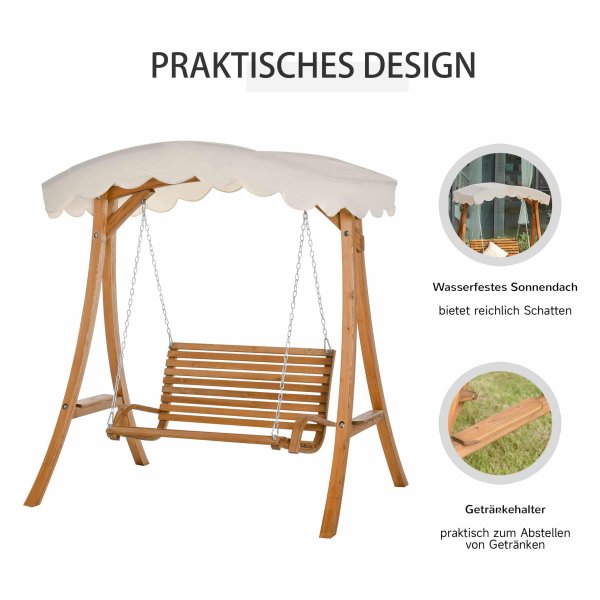 Tuinschommelbank – Hollywood Swing – Zonnedak – Larikshout – Crème wit