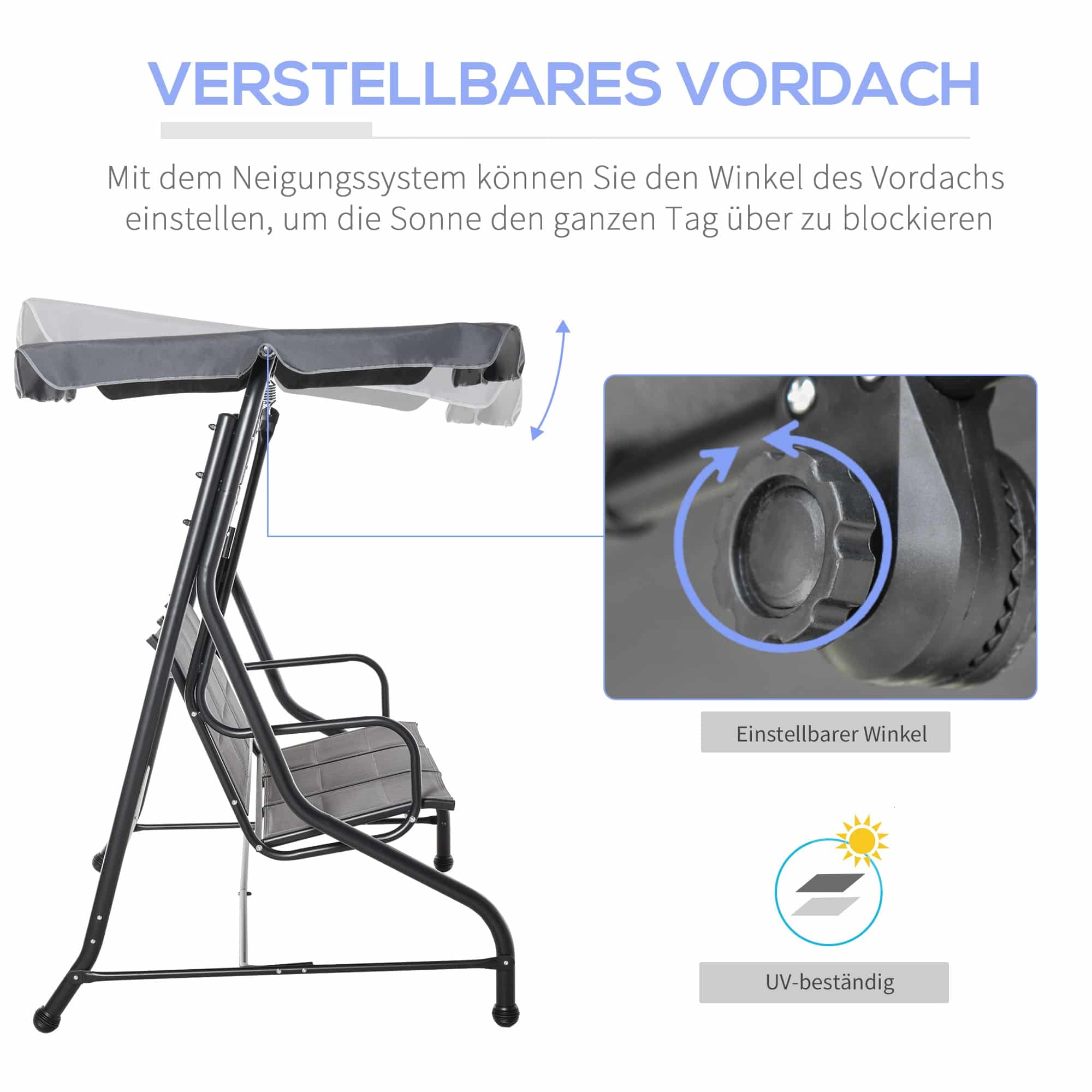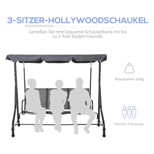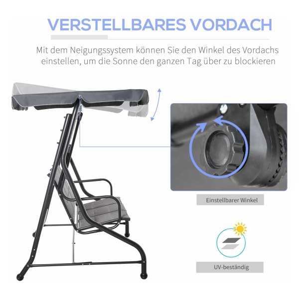 Tuinschommelbank – Hollywood Swing – Verstelbaar zonnedak – Grijs