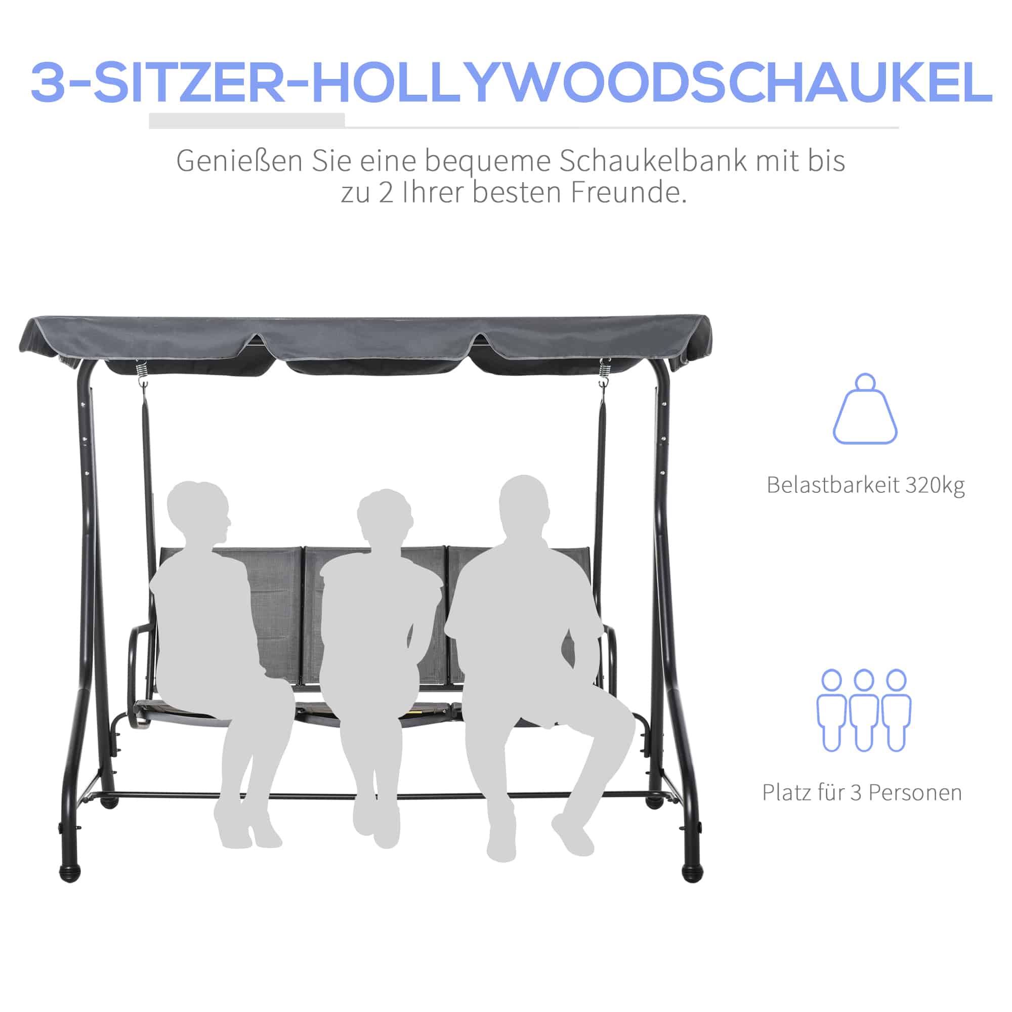 - Het stalen frame van deze tuinschommelbank is voorzien van een poedercoating voor extra duurzaamheid en kan tot wel 320 kg dragen. Dit zorgt voor een veilige en stabiele loungesituatie voor iedereen.