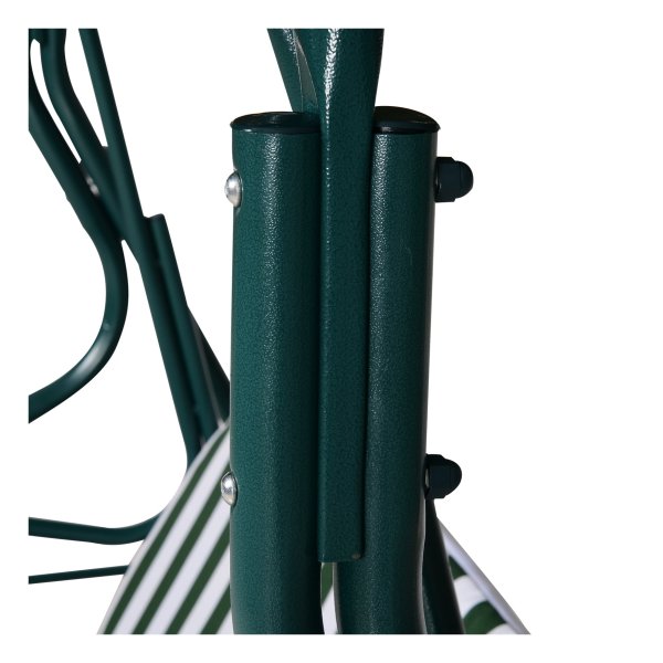 De zitting van de swingbank is gepolsterd voor extra comfort, waardoor u urenlang kunt ontspannen in uw tuin. De groene kleur geeft een natuurlijke uitstraling en past perfect bij elke buitenruimte.