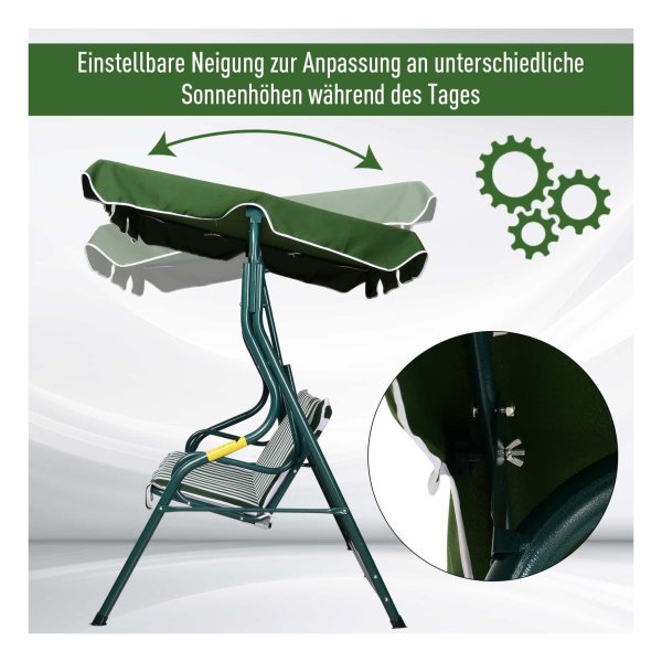 De stijlvolle Swingbank met verstelbaar zonnedak in groen is de perfecte toevoeging aan uw buitenruimte voor gezellige momenten met vrienden en familie. Met voldoende ruimte voor drie personen, kunt u comfortabel genieten van het weer terwijl u ontspant.