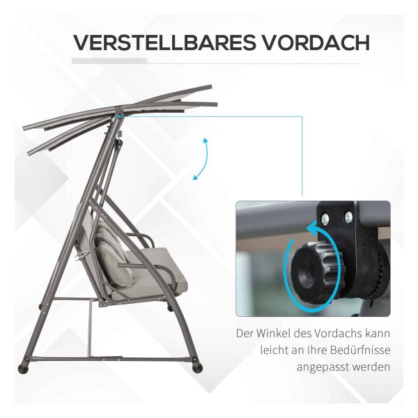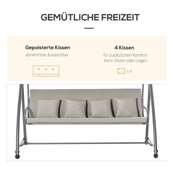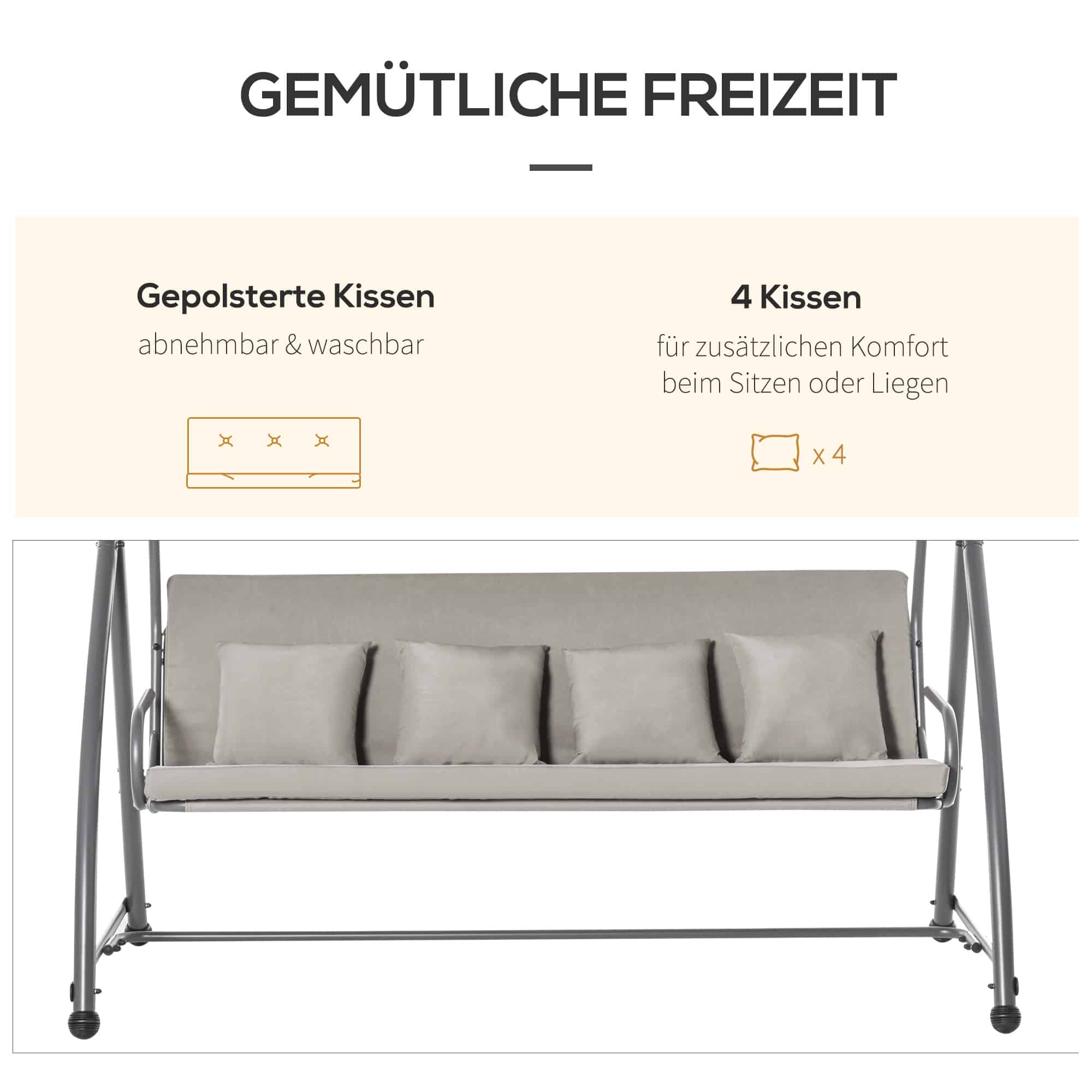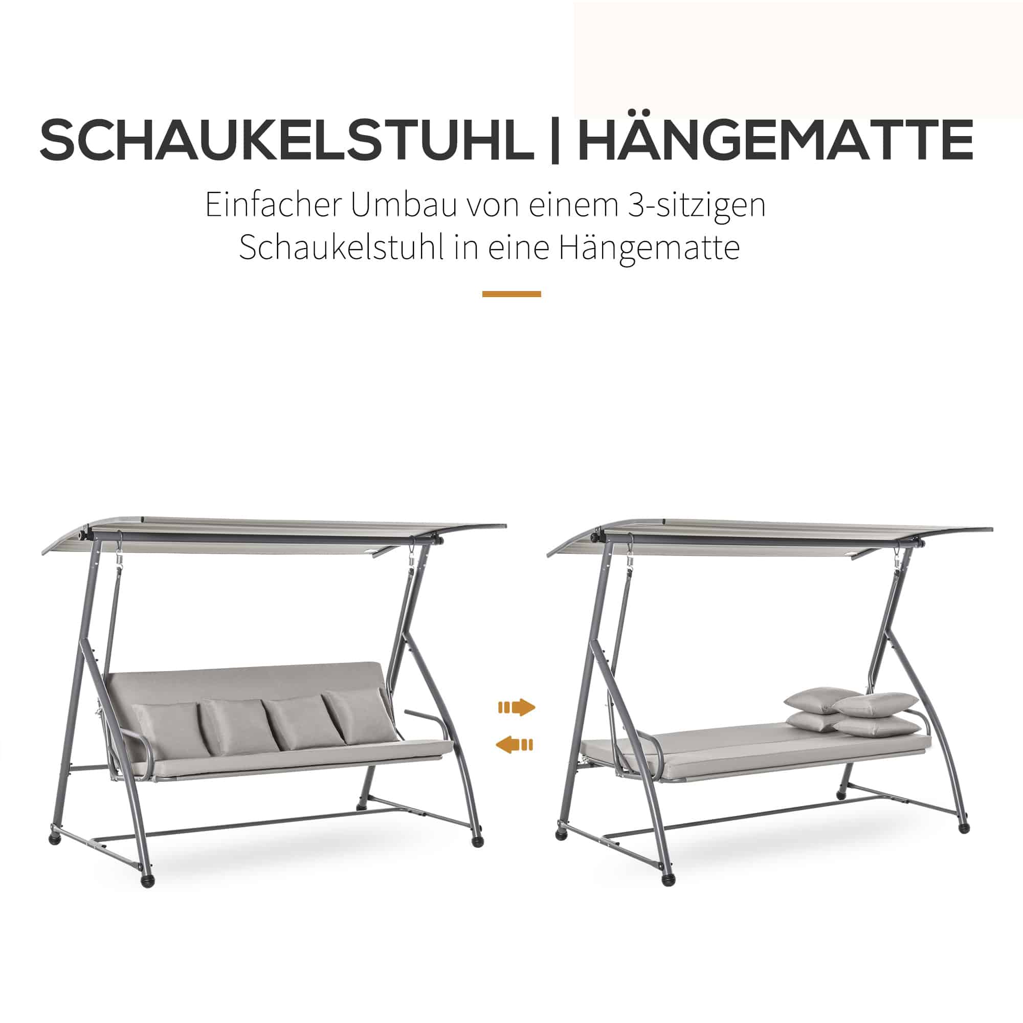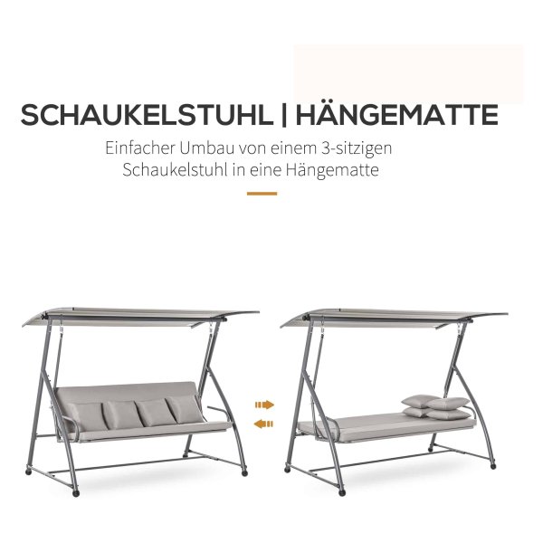 Laat de zomer maar komen met deze tuinschommel voor volwassenen uit Outsunny. Deze veelzijdige Hollywood Swing is niet zomaar een schommel, maar kan eenvoudig worden omgetoverd tot een comfortabel bed. Geniet van ultiem zitcomfort dankzij de royale bekleding en extra kussens die zijn inbegrepen. Ontspan en schommel zachtjes dankzij de stevige veren en het stabiele metalen frame, terwijl het geïntegreerde dak zorgt voor bescherming tegen de felle zon en schadelijke UV-stralen.
