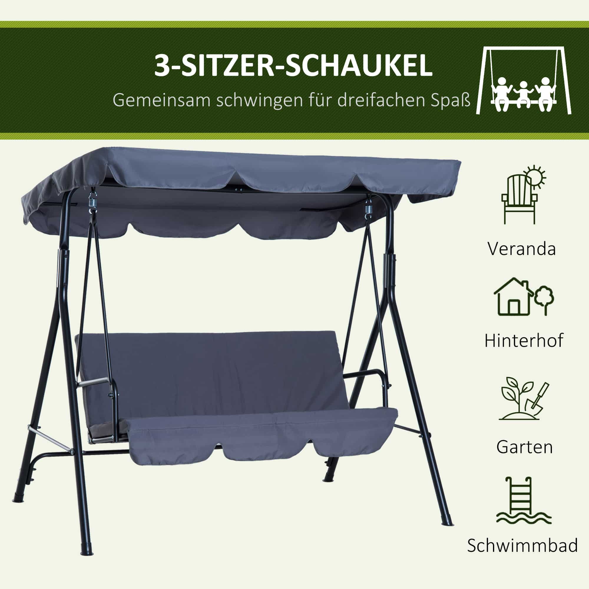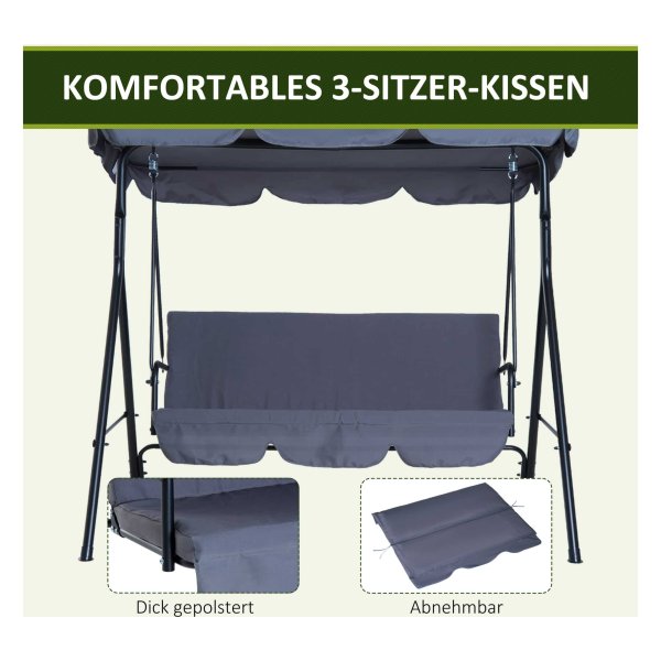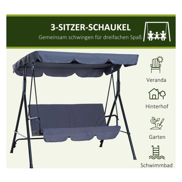 Met de Schommelbank Hollywood 3-zits Grijs haal je niet alleen een stijlvolle en comfortabele toevoeging aan je buitenruimte, maar ook een duurzaam en praktisch meubelstuk waar je vele zomers van zult genieten. Creëer jouw eigen stukje paradijs en geniet van ultieme ontspanning in de frisse buitenlucht. Bestel nu jouw schommelbank en maak van jouw tuin een oase van rust en comfort!