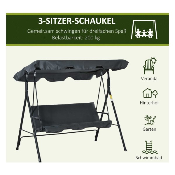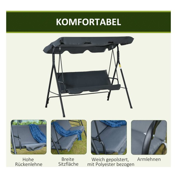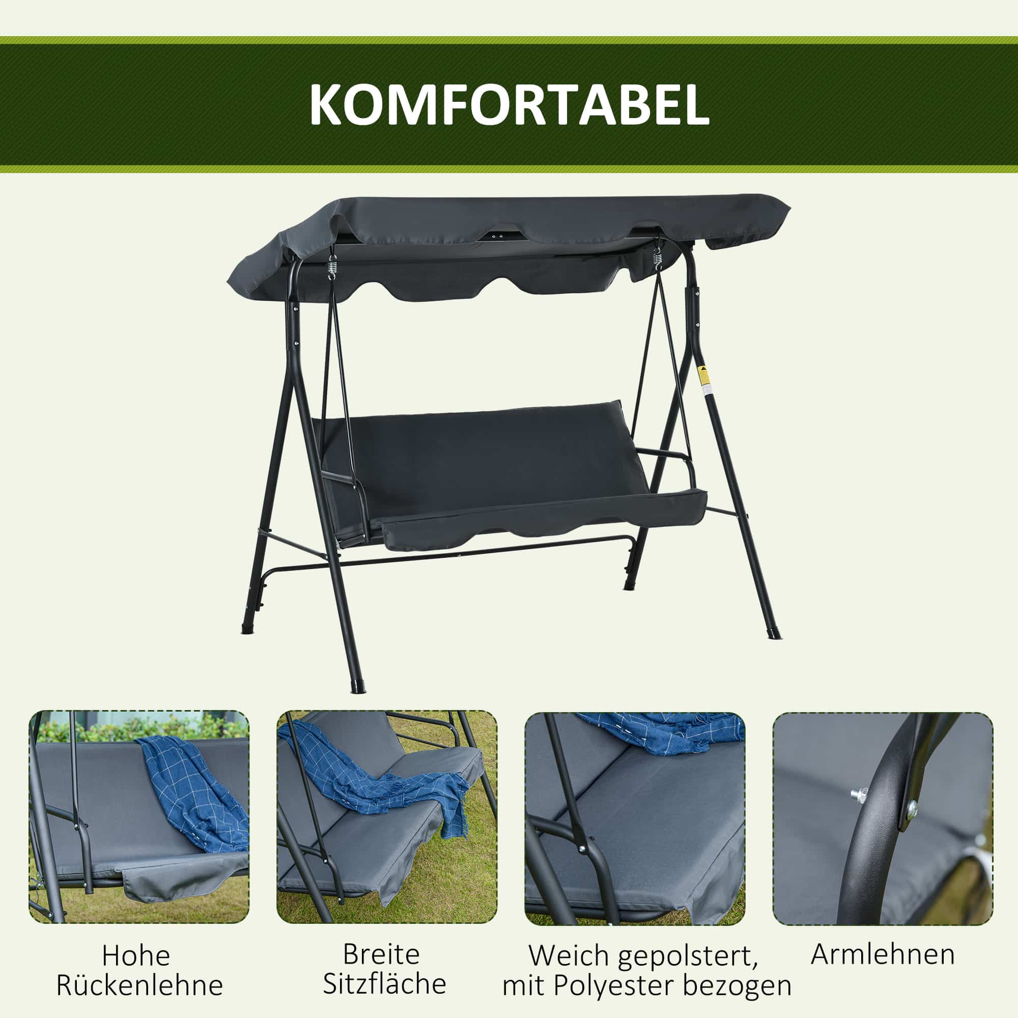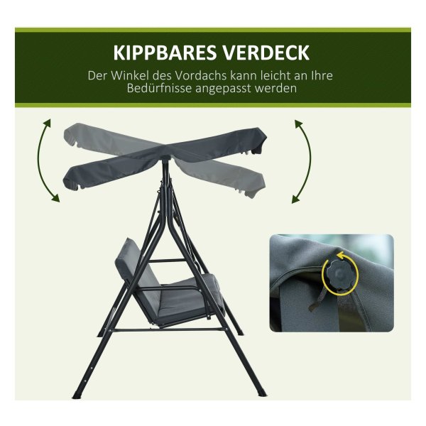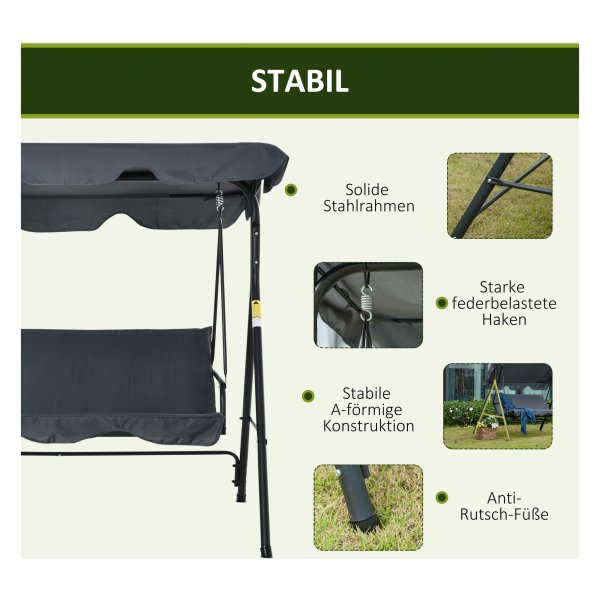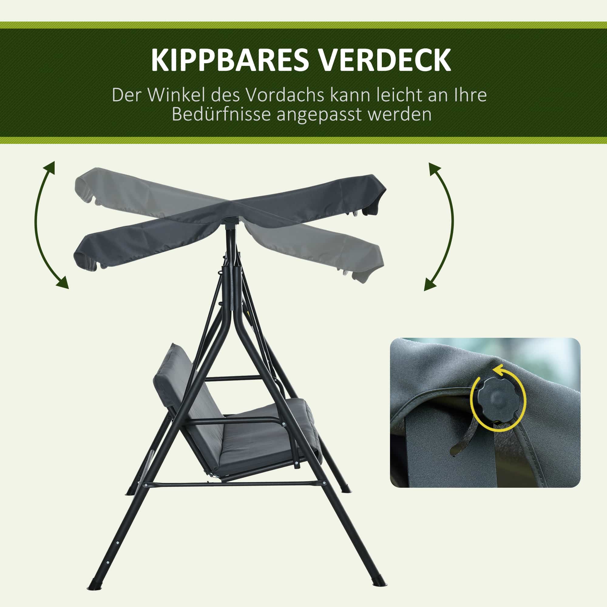 Deze tuinschommel is gemaakt van hoogwaardig staal, waardoor hij stabiel en duurzaam is. Het stalen dak is niet alleen stijlvol, maar ook functioneel, omdat het je beschermt tegen de zon en lichte regen, waardoor je op elk moment van de dag kunt genieten van je swing.