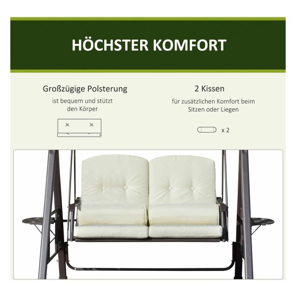 Daarnaast heeft de schommelbank twee zijplanken waar je gemakkelijk je drankjes, snacks of accessoires kunt plaatsen. Zo heb je alles binnen handbereik zonder telkens op te hoeven staan.