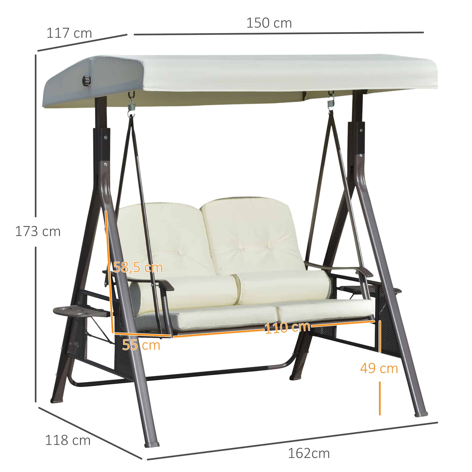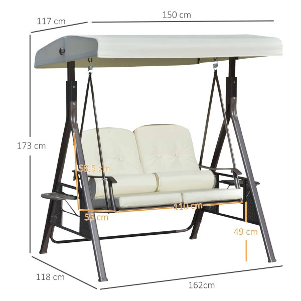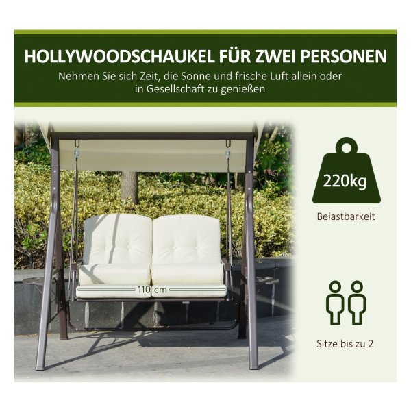 De Hollywood schommelbank is gemaakt van een metalen frame met een elegante beige kleur die in elke buitenomgeving past. Met afmetingen van 162L x 118B x 173H cm en een zitoppervlak van 110B x 55H cm biedt deze schommelbank genoeg ruimte voor jou en je gasten.