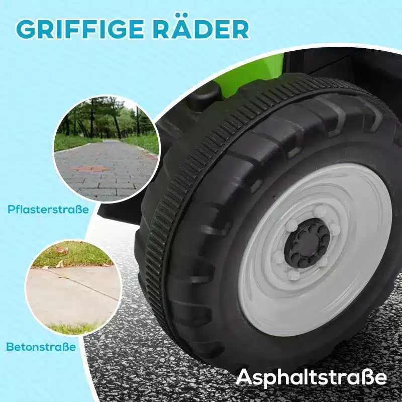 De Elektrische Groene Auto is gemaakt van hoogwaardige materialen, zoals plastic en metaal, waardoor het duurzaam en veilig is voor langdurig gebruik. De wielen van de auto zijn ontworpen om moeiteloos over verschillende terreinen te rijden, zodat uw kind overal kan verkennen.