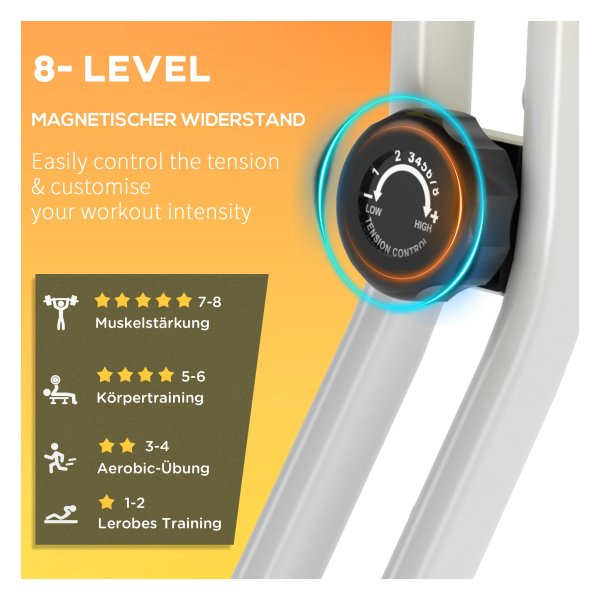 Daarom is de de ideale metgezel voor iedereen die wil werken aan zijn conditie, calorieën wil verbranden en verschillende spiergroepen wil versterken. Met zijn hoogwaardige constructie en stabiliteit biedt deze hometrainer de perfecte combinatie van comfort en prestaties.