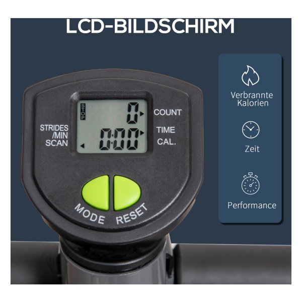 - LCD-scherm toont tijd, stappen en verbrande calorieën voor een overzichtelijke trainingssessie.