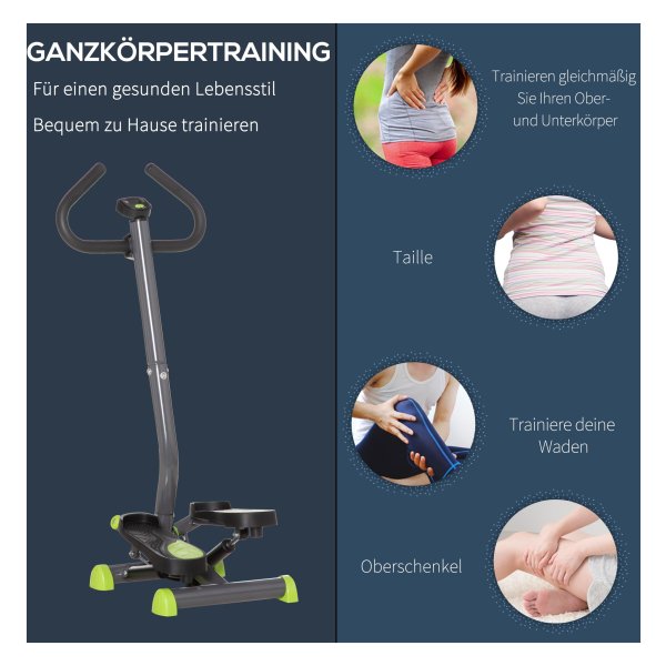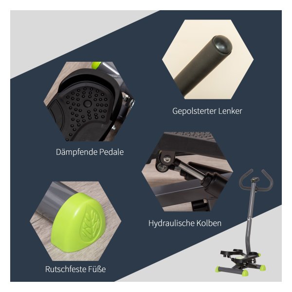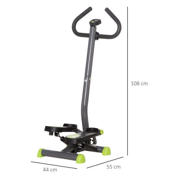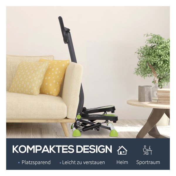 De trainingsloopband is uitgevoerd in een stijlvol grijs en groen design en heeft een compact formaat van 55L x 44B x 108H cm. Met een levelbereik van 12-30 cm biedt dit fitnessapparaat voldoende variatie voor verschillende trainingsintensiteiten. Het wordt geleverd inclusief een duidelijke instructie voor montage en gebruik.