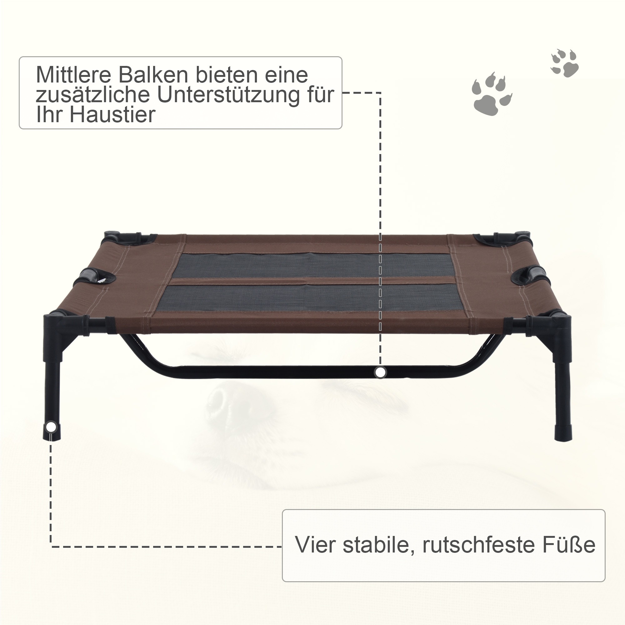 - Door het verhoogde ontwerp blijft jouw huisdier weg van de koude en vochtige grond, wat zorgt voor een comfortabele rustplek.
