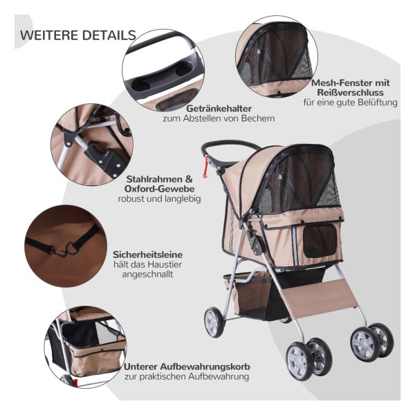- Het zonnedak beschermt je huisdier tegen felle zonnestralen en kan indien nodig volledig worden teruggetrokken.
