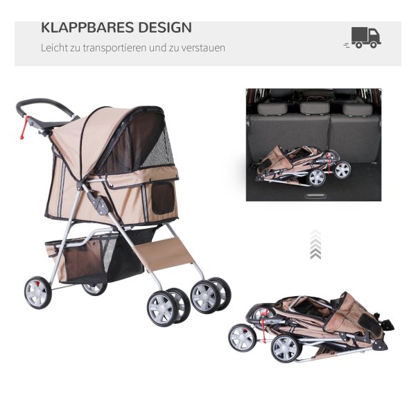 - De buggy kan eenvoudig worden opgevouwen, waardoor deze ruimtebesparend is voor zowel dieren als eigenaren.