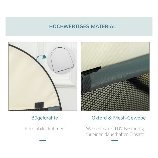 - Materiaal: Oxford-stof met PVC-coating, staaldraad