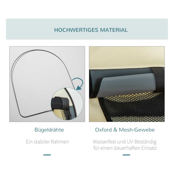 - Materiaal: Oxford-stof met PVC-coating, staaldraad